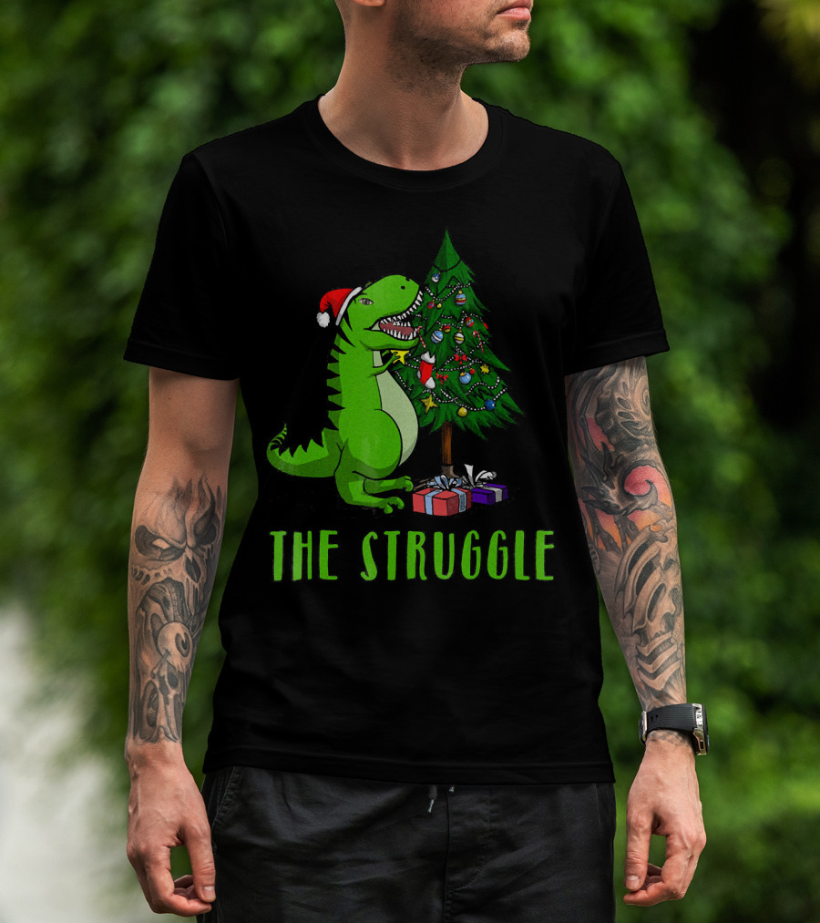 The Struggle T Rex Santa Christmas Tree T-Shirt