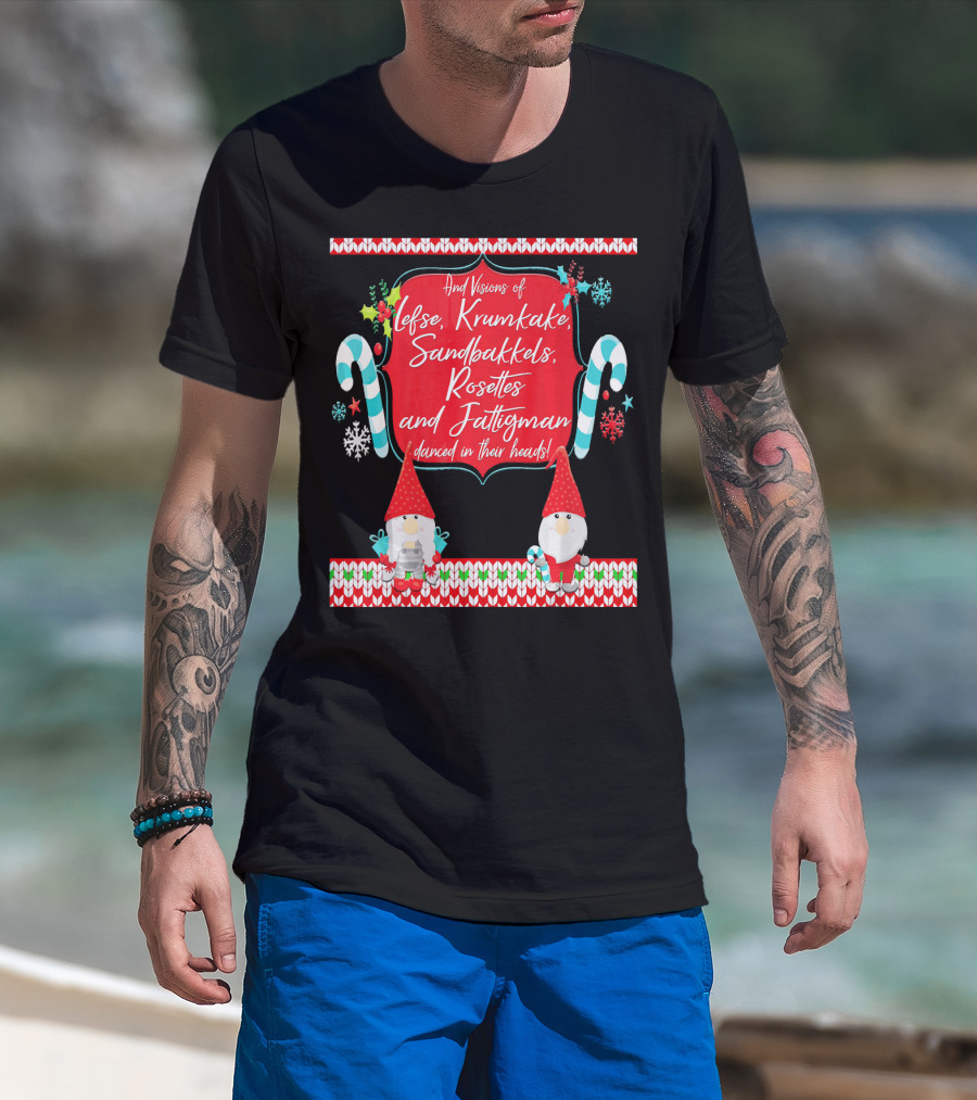 And Visions Of Lefse Krumkake Sandbakkels Rosettes And Fattigman Danced In Their Heads Norwegian Nisse T-Shirt