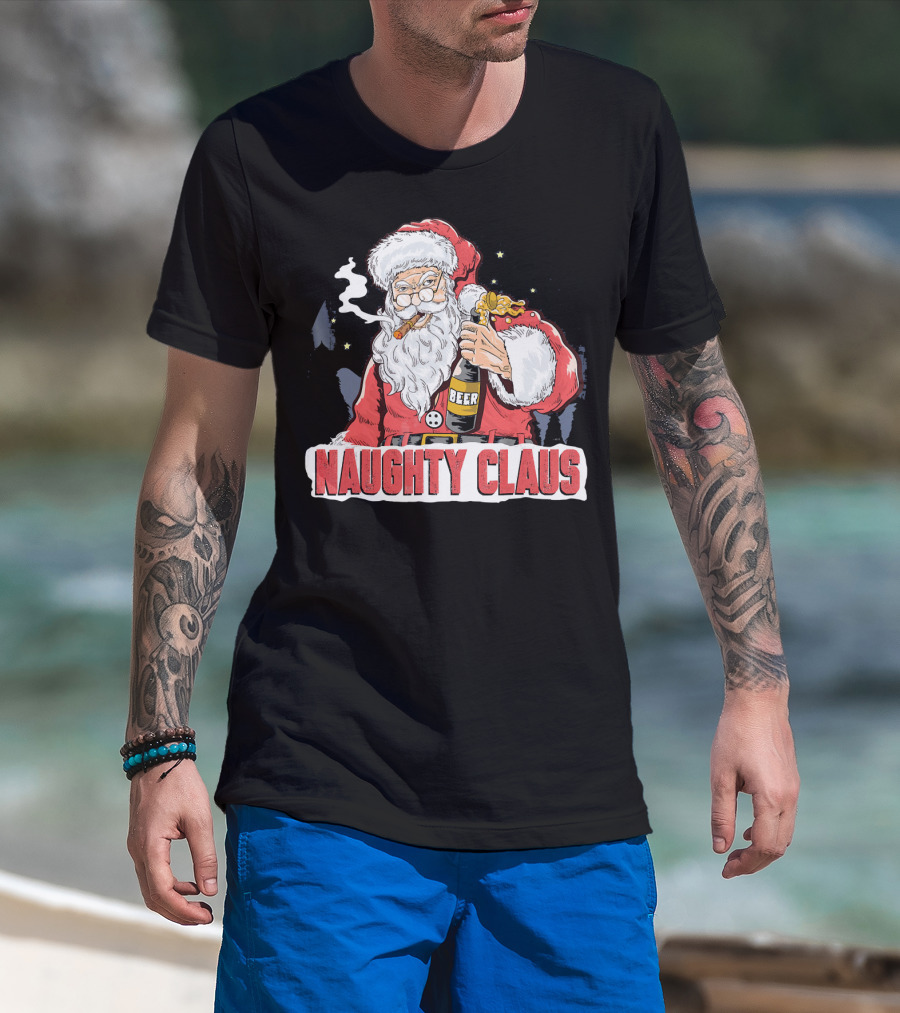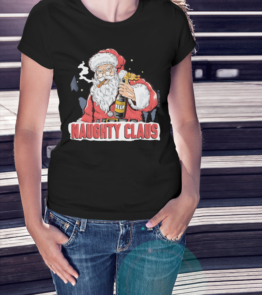 Naughty Claus Santa With Beer Funny Humor XMAS T-Shirt