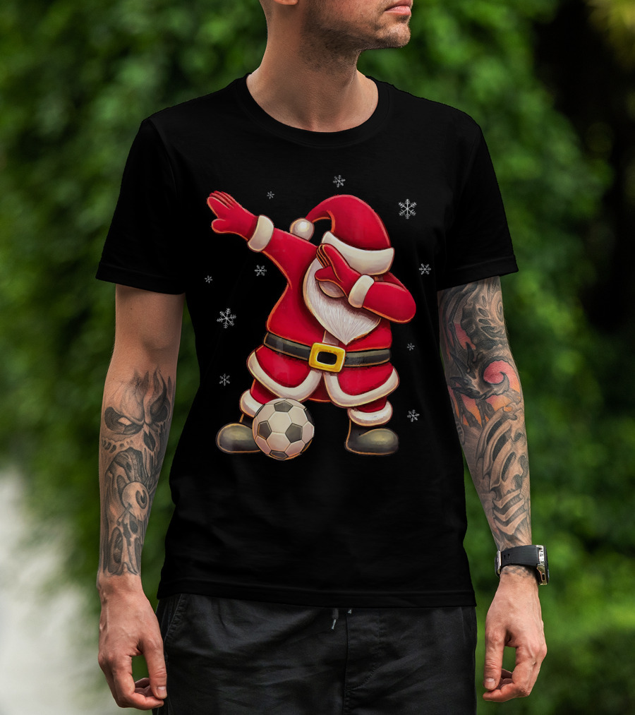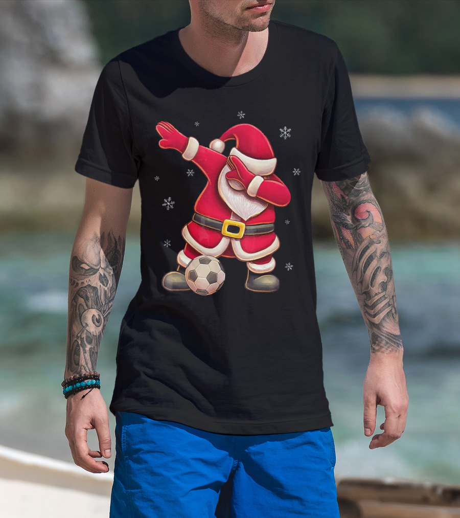 Dabbing Santa Claus Soccer Snowflakes T-Shirt