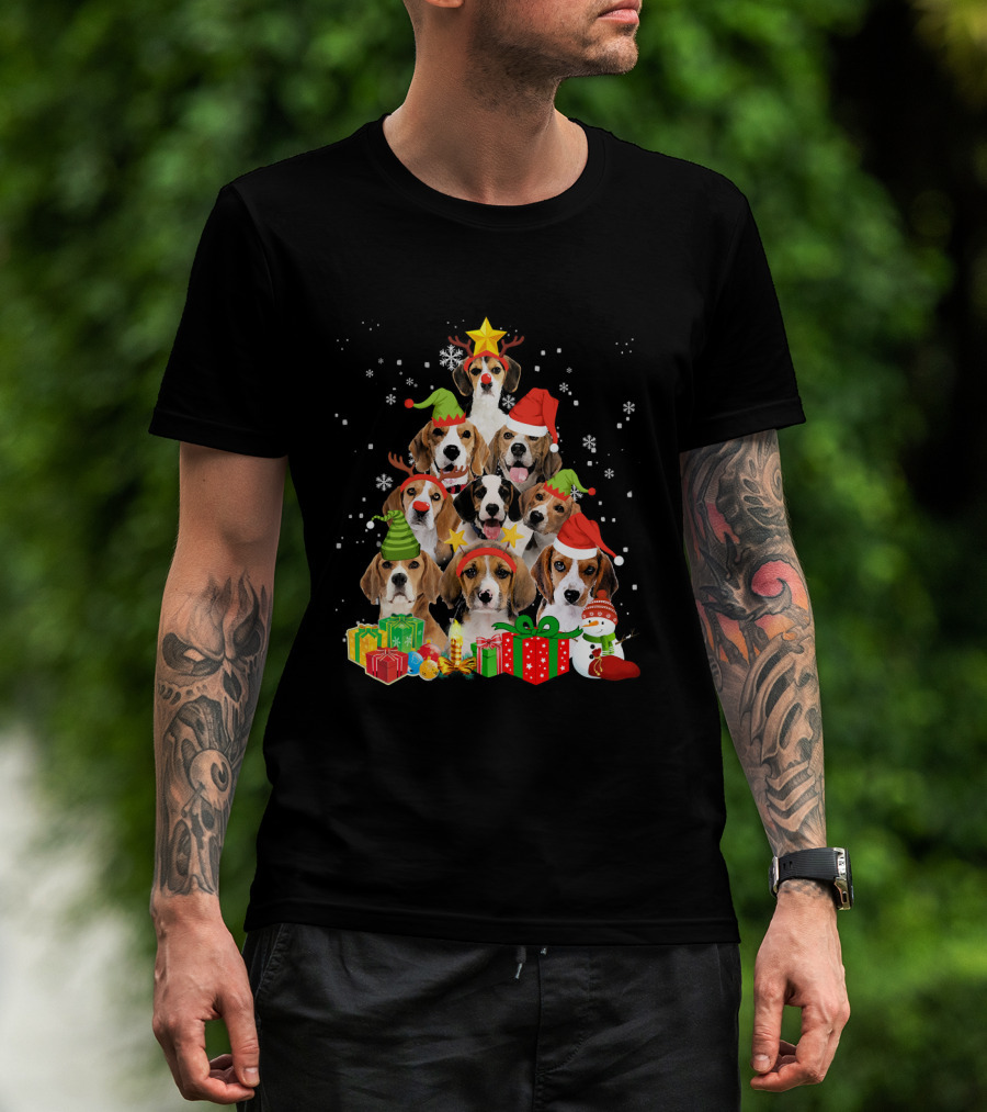 Funny Beagle Christmas Tree Santa Hats Presents Snowman T-Shirt