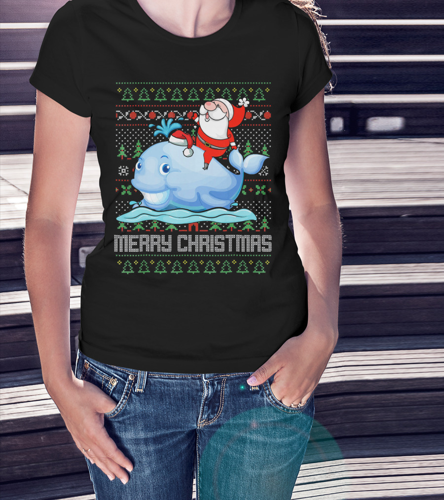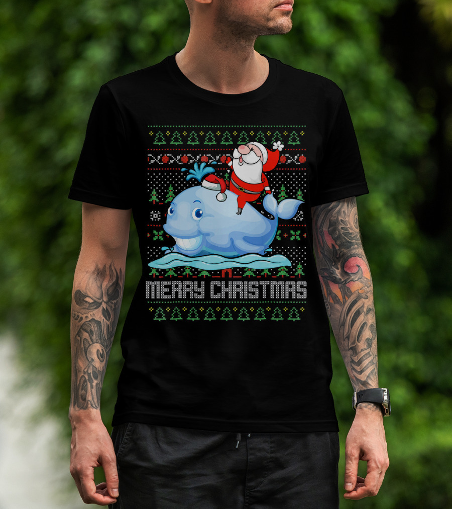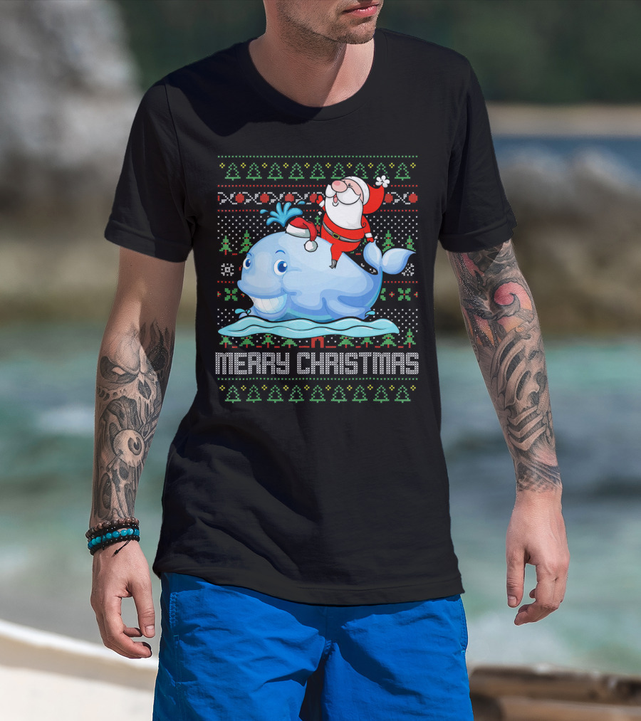 Merry Christmas Funny Santa Claus Riding Whale Holiday T-Shirt