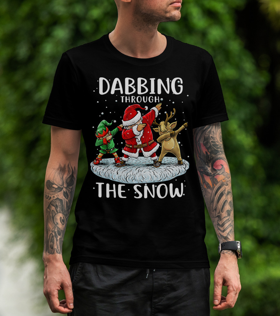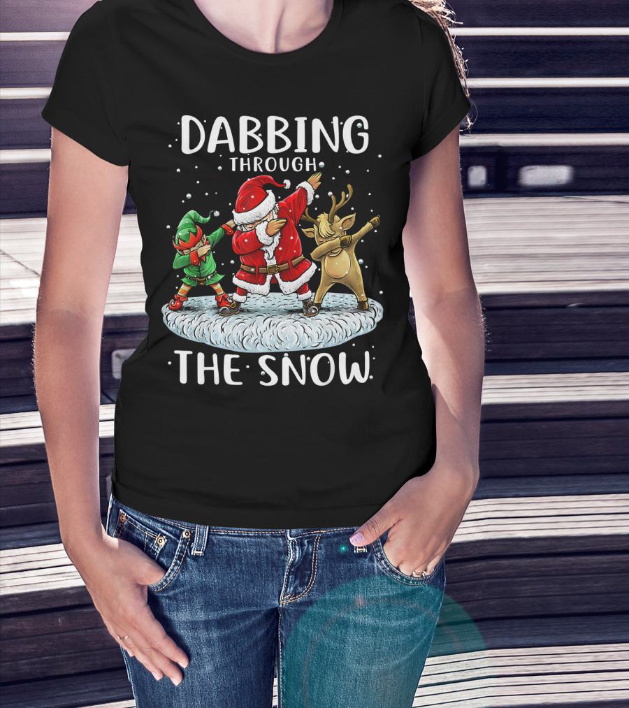 Dabbing Through The Snow Santa Elf Reindeer Funny Christmas T-Shirt