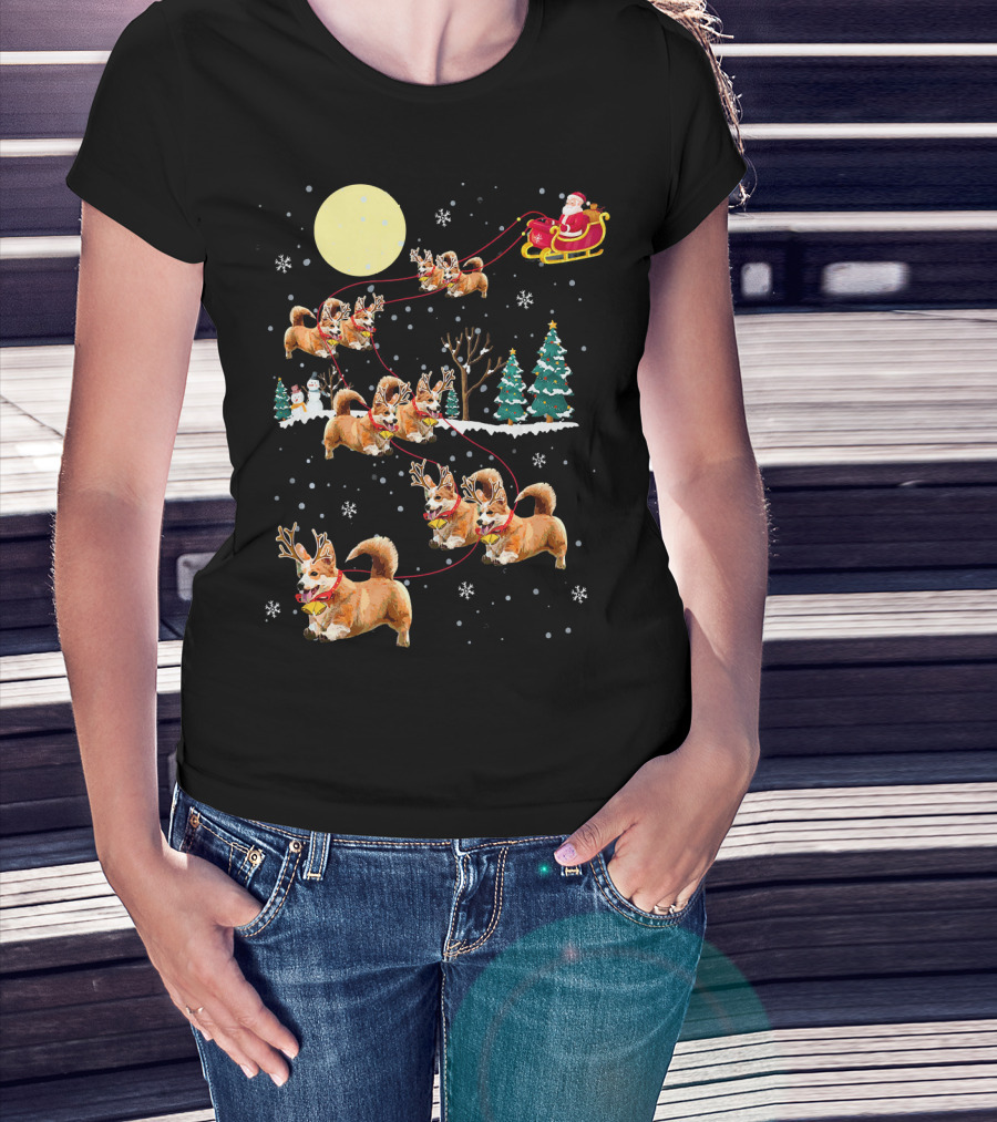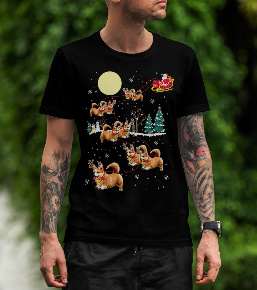 Christmas Corgi Santa Sleigh Cute Holiday Pajamas T-Shirt