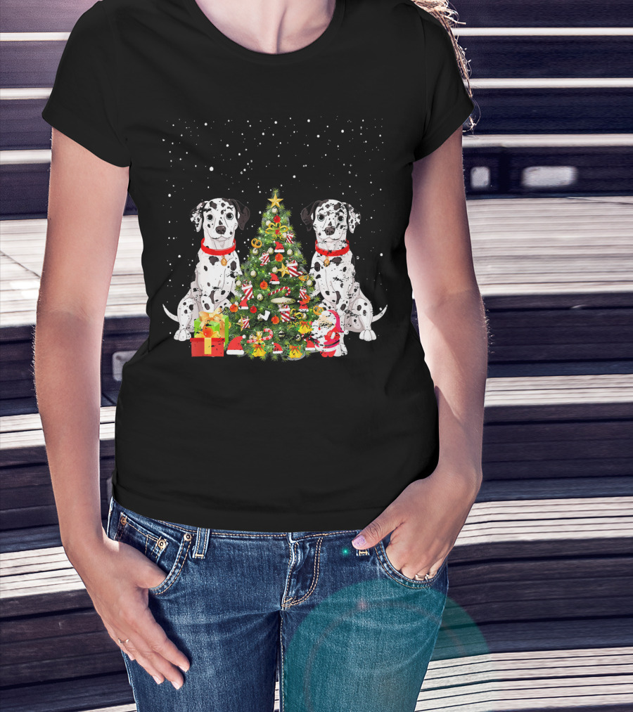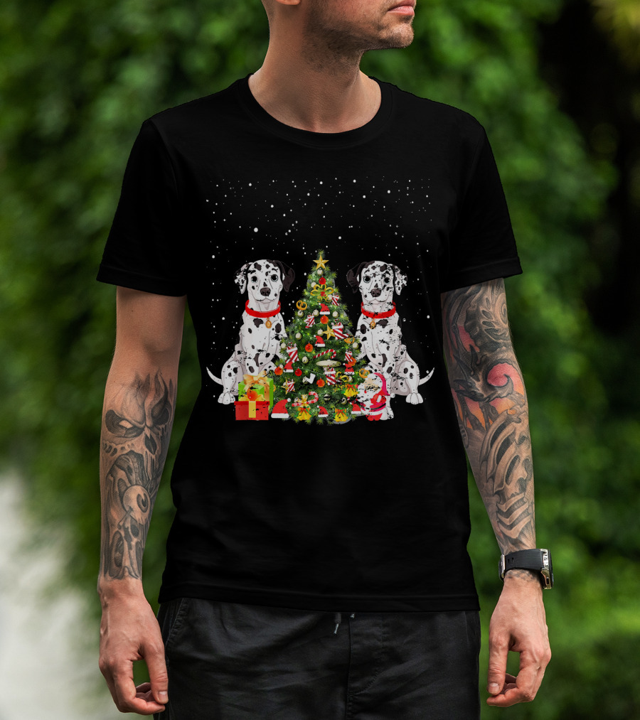 Dalmatian Christmas Tree Dalmatian Holiday Costume With Gifts And Santa T-Shirt