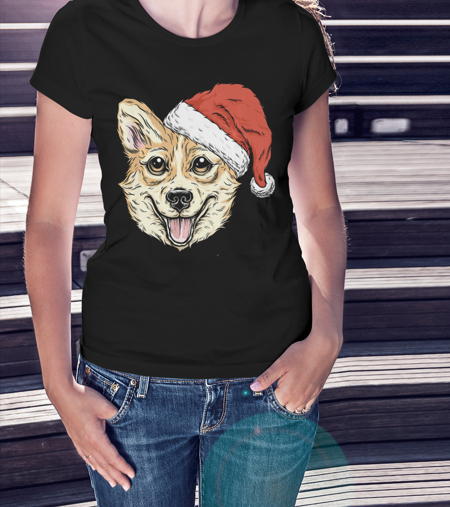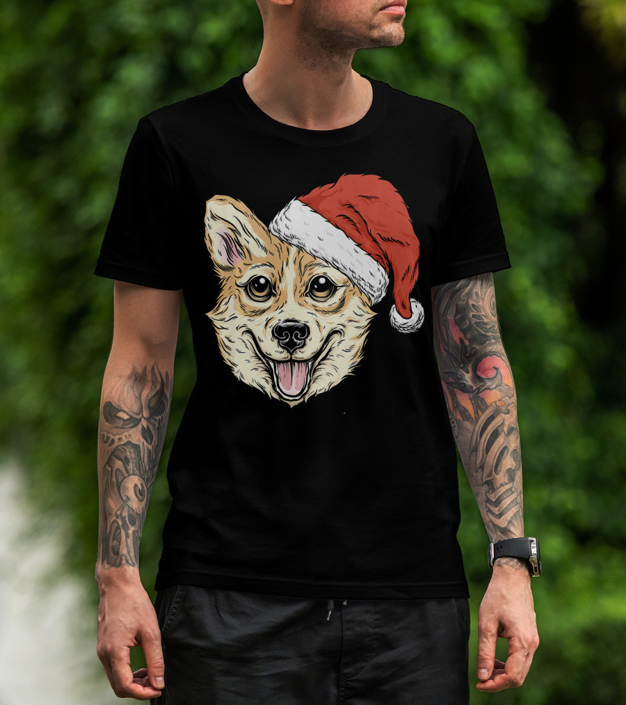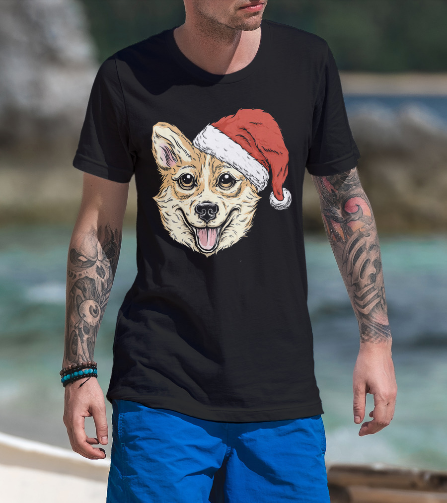 Corgi Dog Santa Hat Funny Christmas Corgi T-Shirt