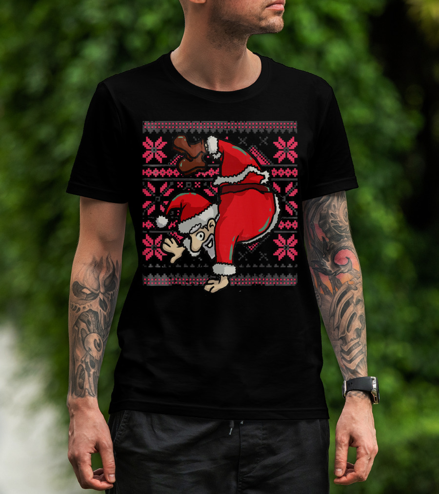 Ugly Christmas Santa Handstand T-Shirt