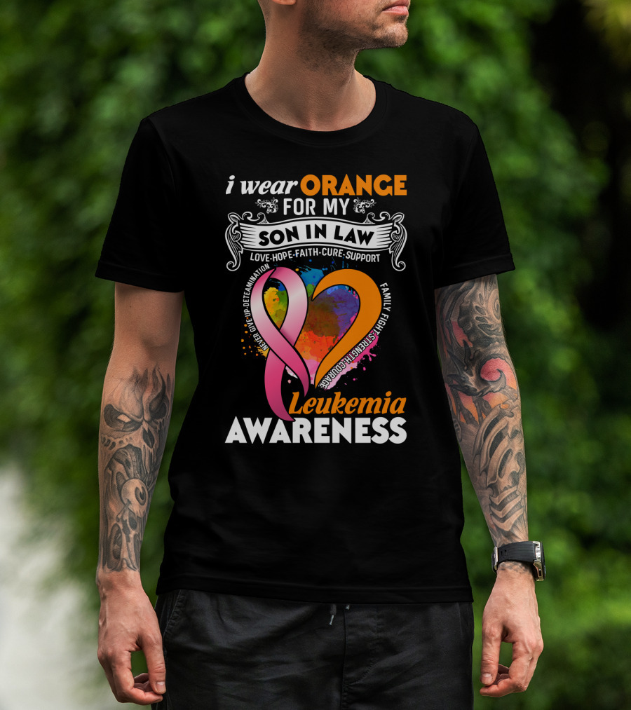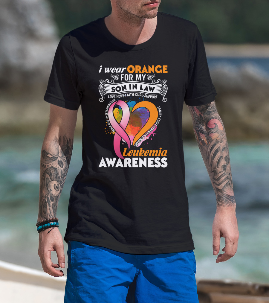 I Wear Orange For My Son In Law Leukemia Awareness Love Hope Faith Cure Strength Courage Family Support T-Shirt