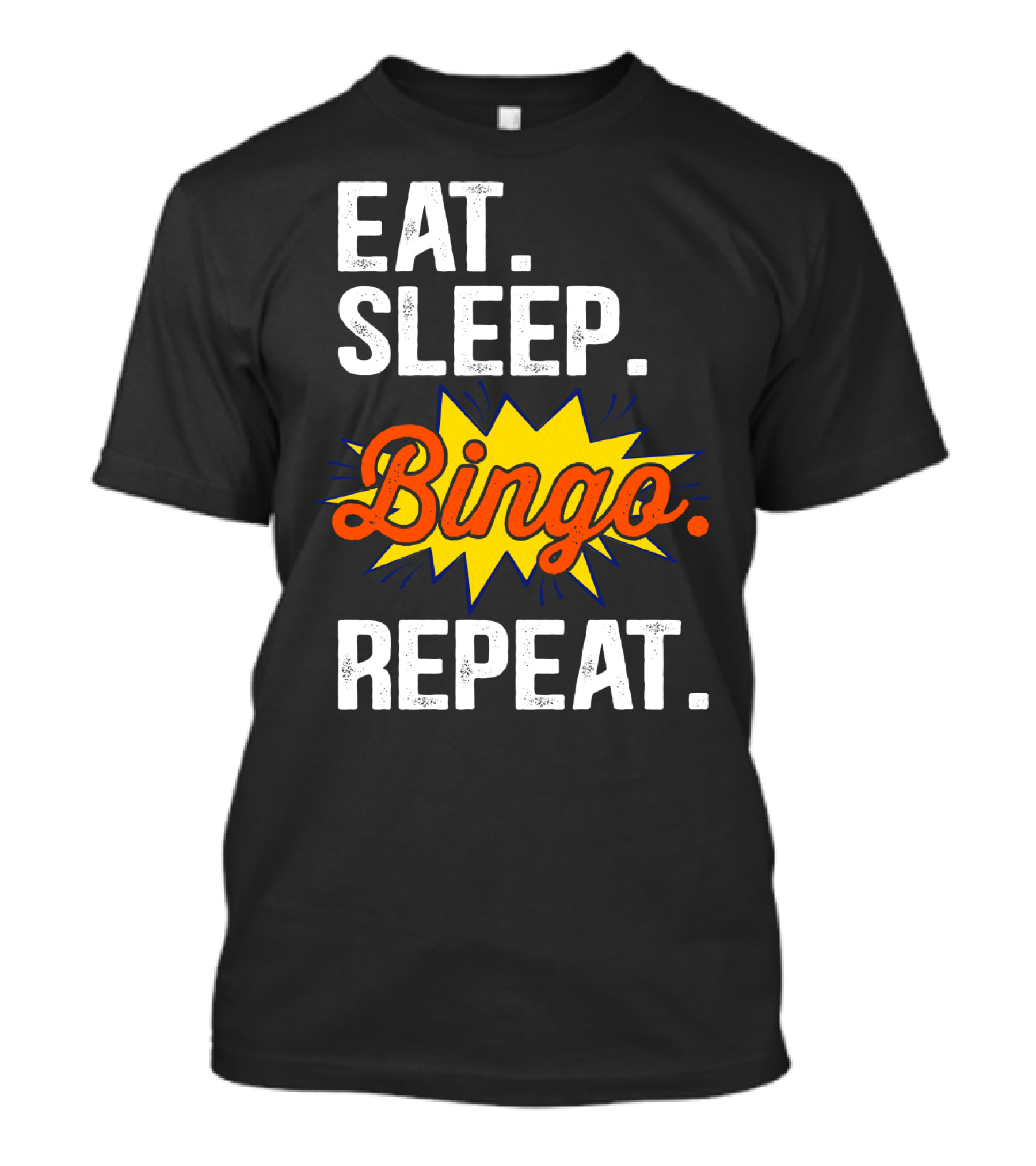 The Eat Sleep Bingo Repeat Player Funny Lover Enthusiast T-shirt is designed for everyday wear and a consistent fit. Fabric is pre-shrunk ring-spun cotton with durable stitching. See the size chart below for exact measurements.