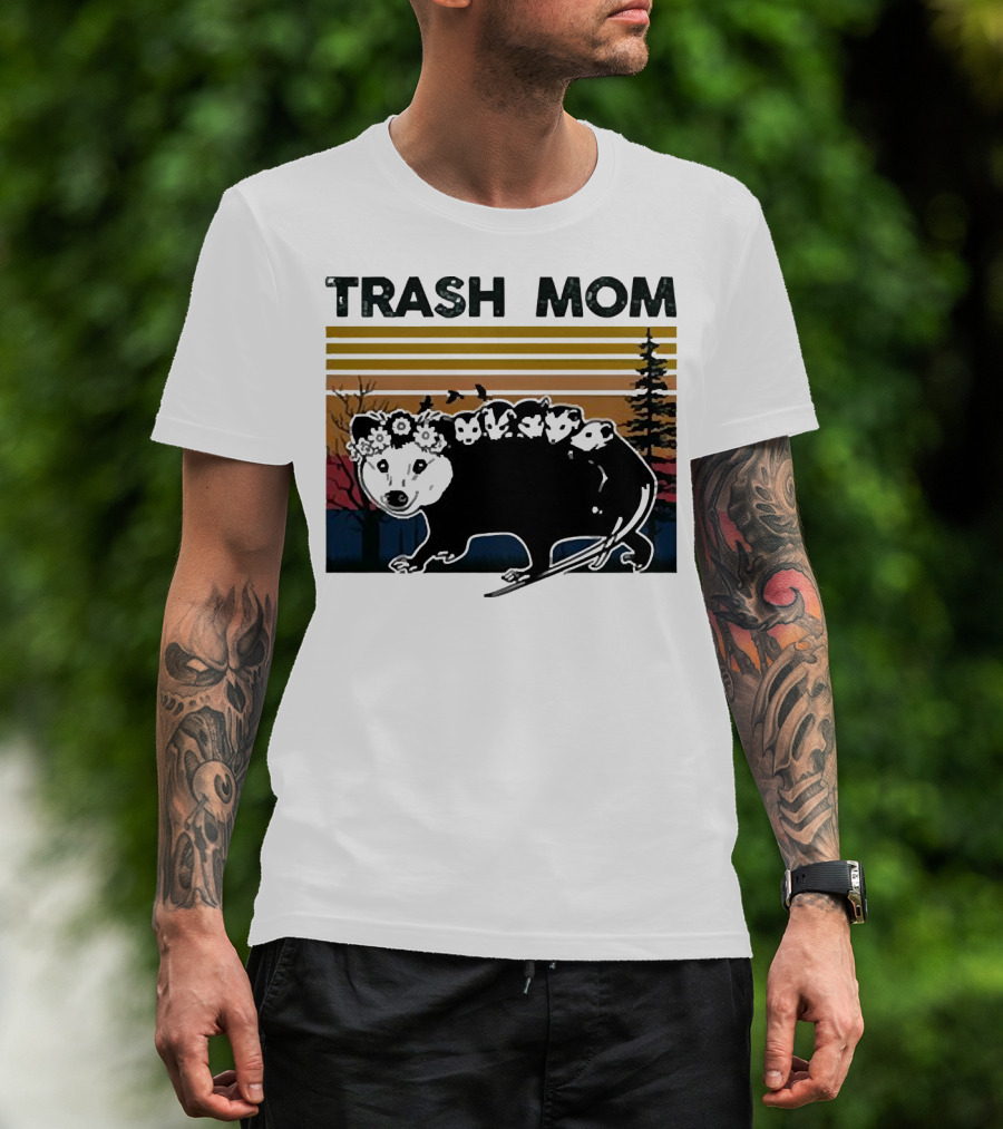 Trash Mom Raccoon Retro Forest Sunset T-Shirt