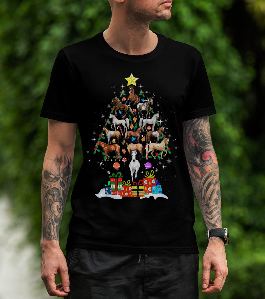 Horse Christmas Tree With Star And Holiday Gifts T-Shirt