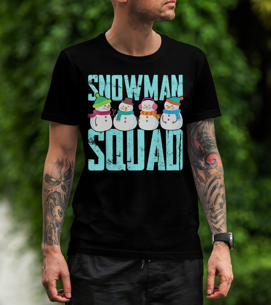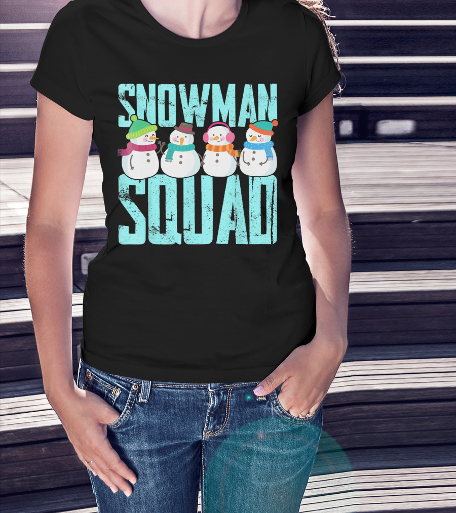 Snowman Squad Christmas Elf Snowmen With Scarves And Hats T-Shirt