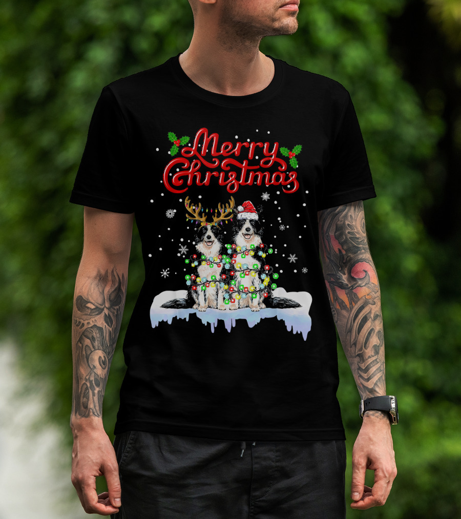 Merry Christmas Border Collie Christmas Lights Funny Dog Santa Reindeer T-Shirt