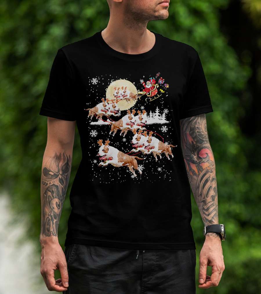 Santa's Christmas Pitbull Reindeer Sleigh Ride T-Shirt