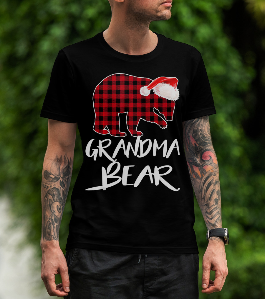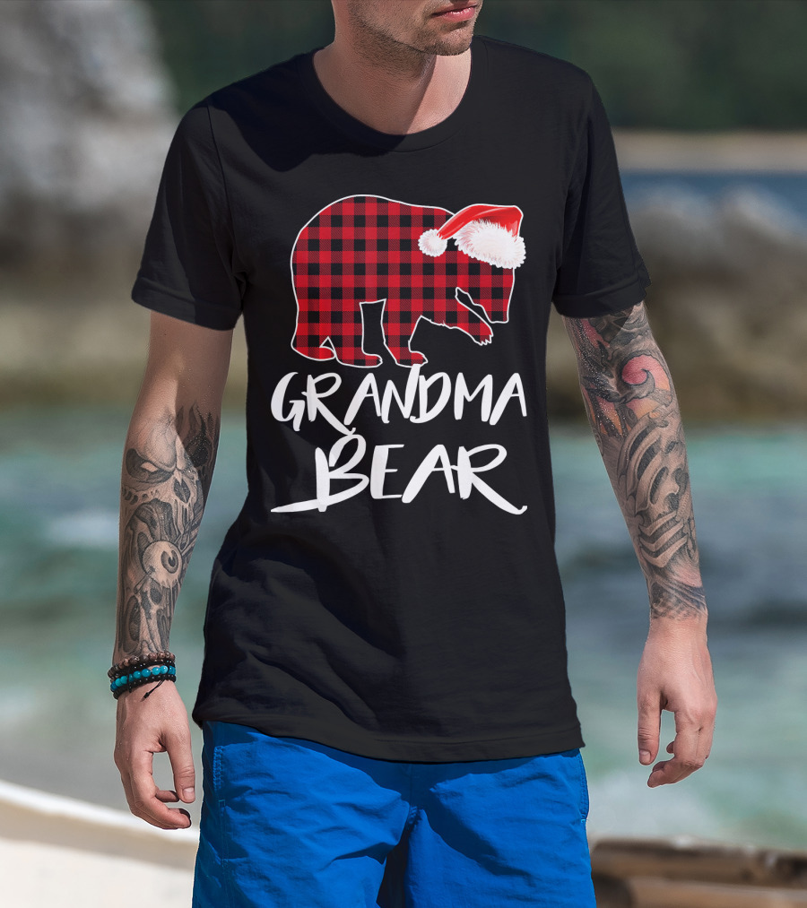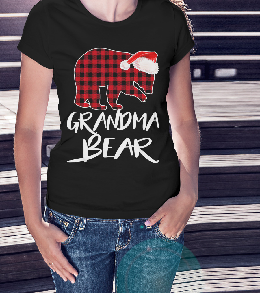 Grandma Bear Red Plaid Santa Hat T-Shirt