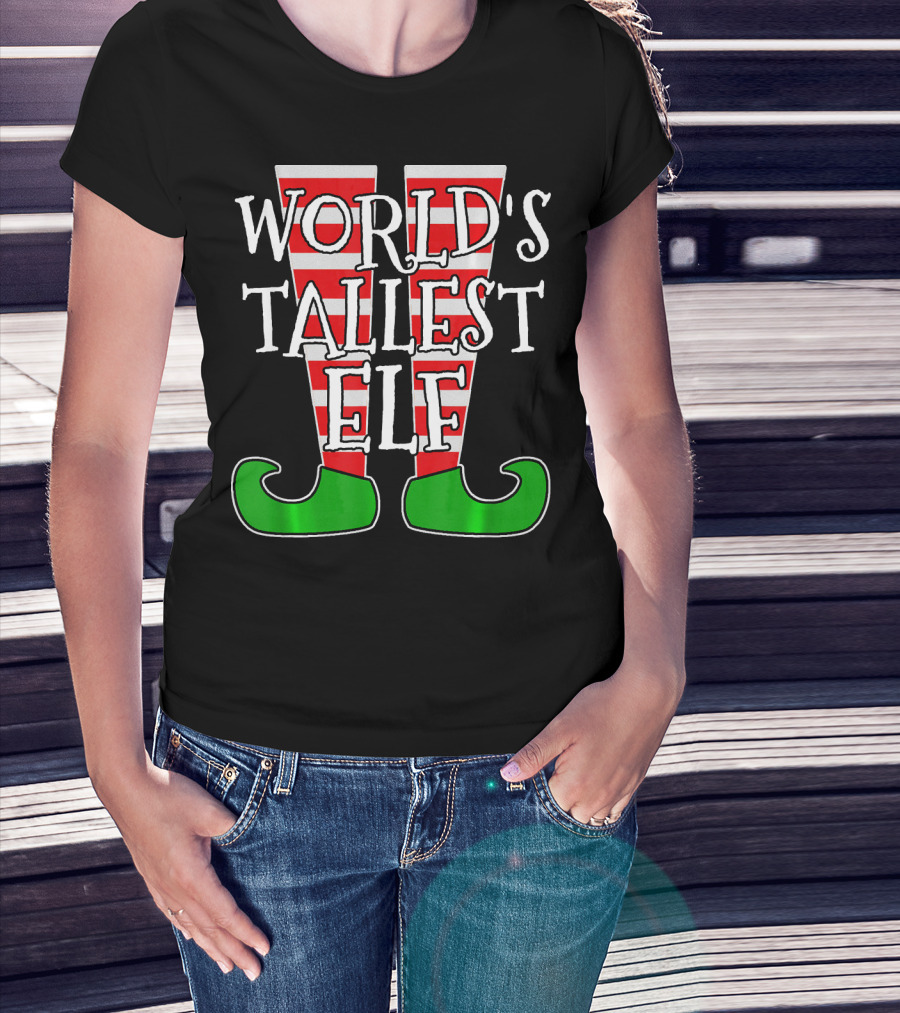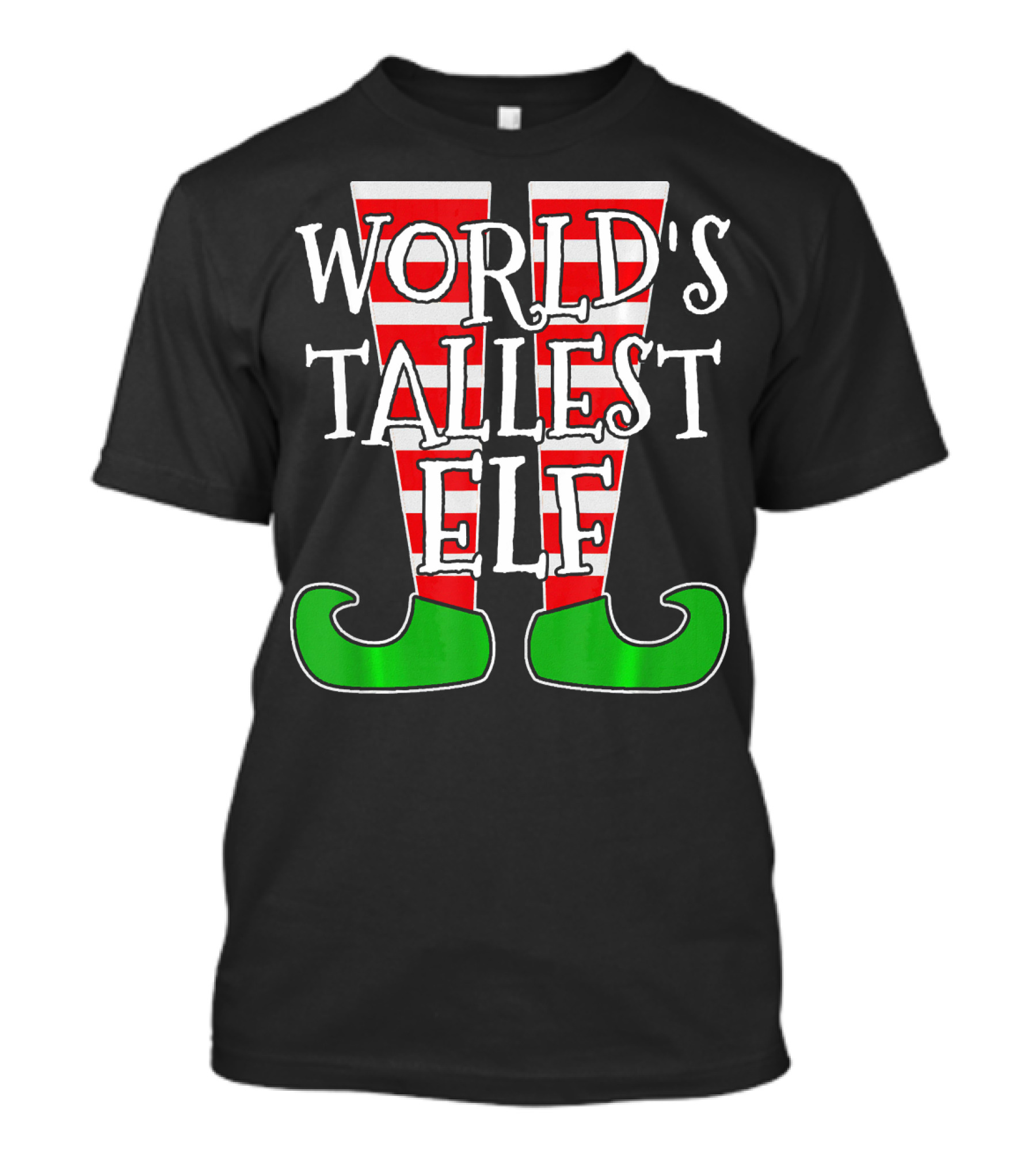 The WORLD'S TALLEST ELF STRIPED LEGS WITH GREEN SHOES HOLIDAY HUMOR T-shirt is designed for everyday wear and a consistent fit. Fabric is pre-shrunk ring-spun cotton with durable stitching. See the size chart below for exact measurements.