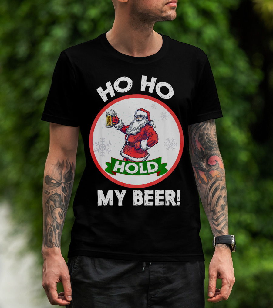 Ho Ho Hold My Beer Santa Claus Christmas Humor T-Shirt