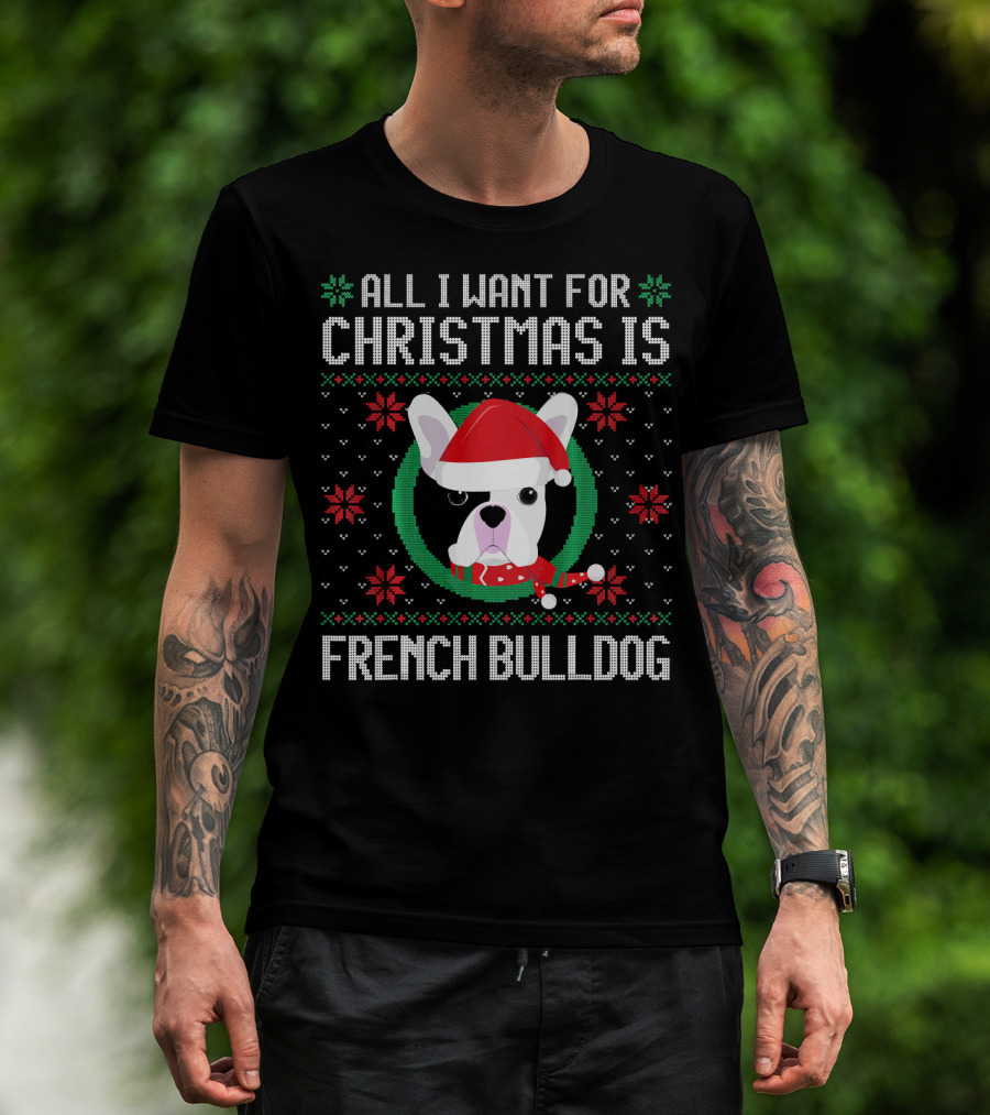 All I Want For Christmas Is French Bulldog Santa Hat Ugly T-Shirt