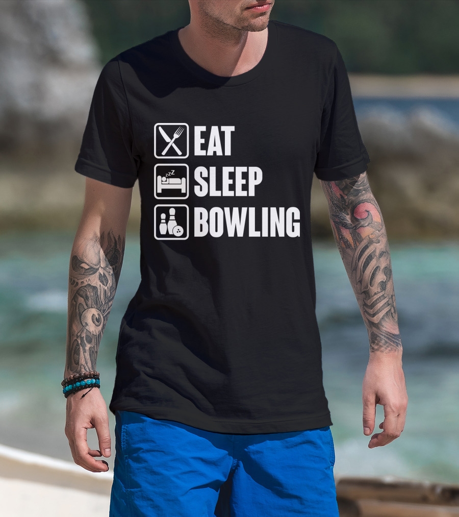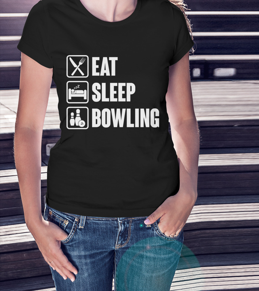 Eat Sleep Bowling Icons Fork Bed Pins Ball T-Shirt