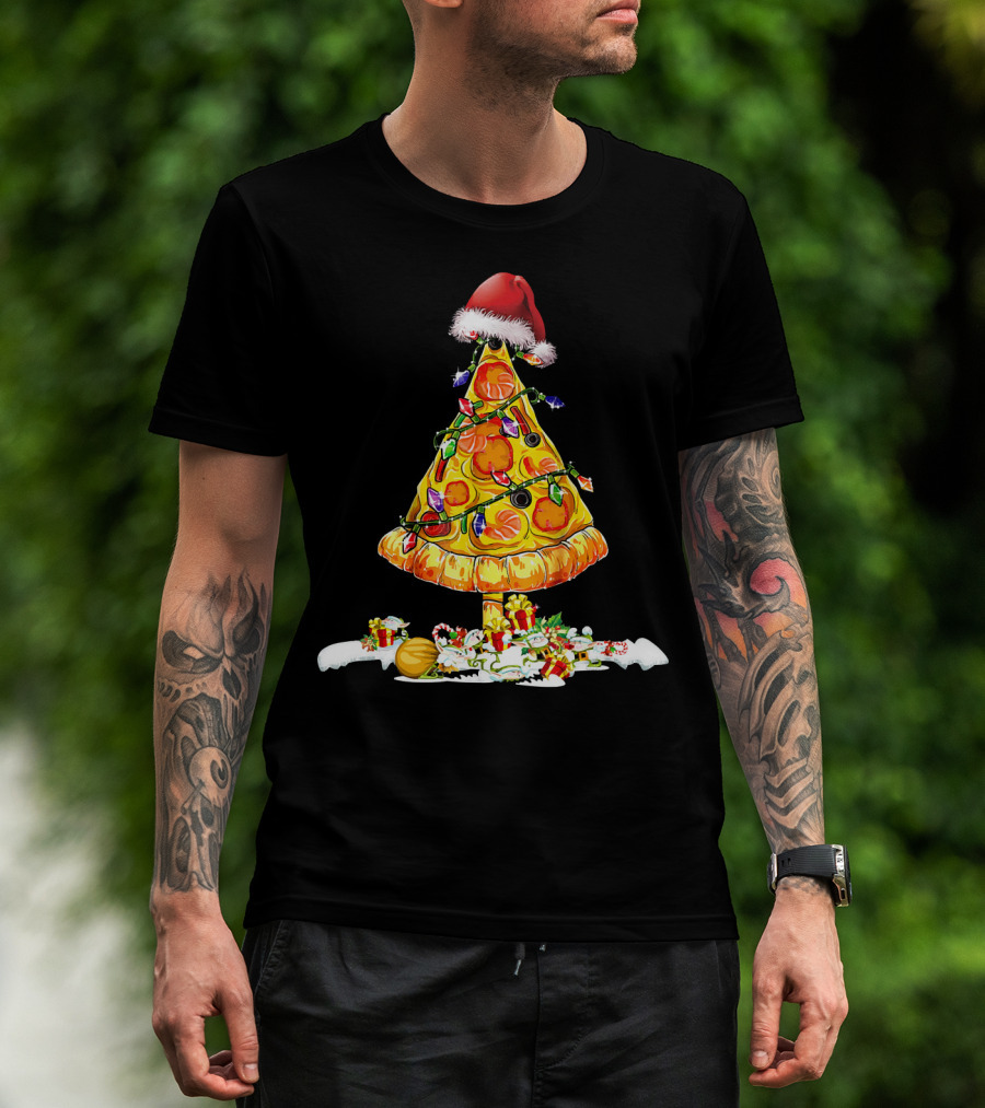 Merry Crustmas Pizza Tree Pizza Lover Holiday Santa Hat T-Shirt