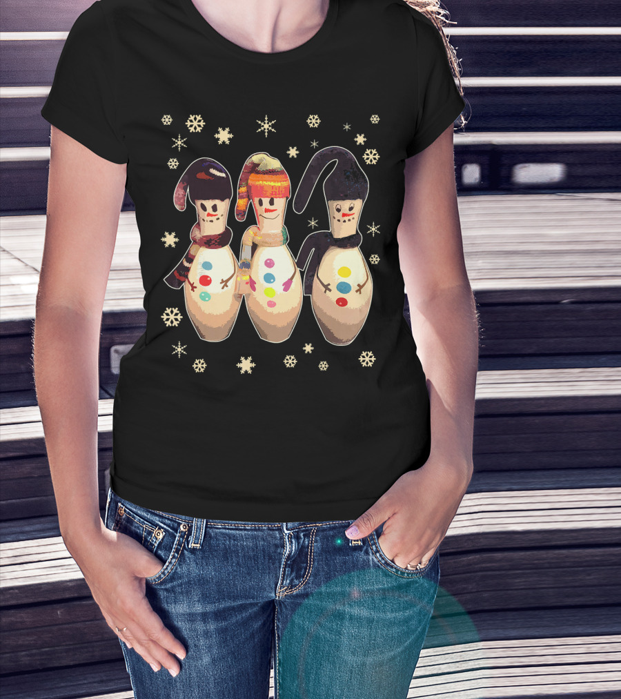 BOWLING PINS WINTER SNOWMAN SCARVES HATS SNOWFLAKES T-Shirt