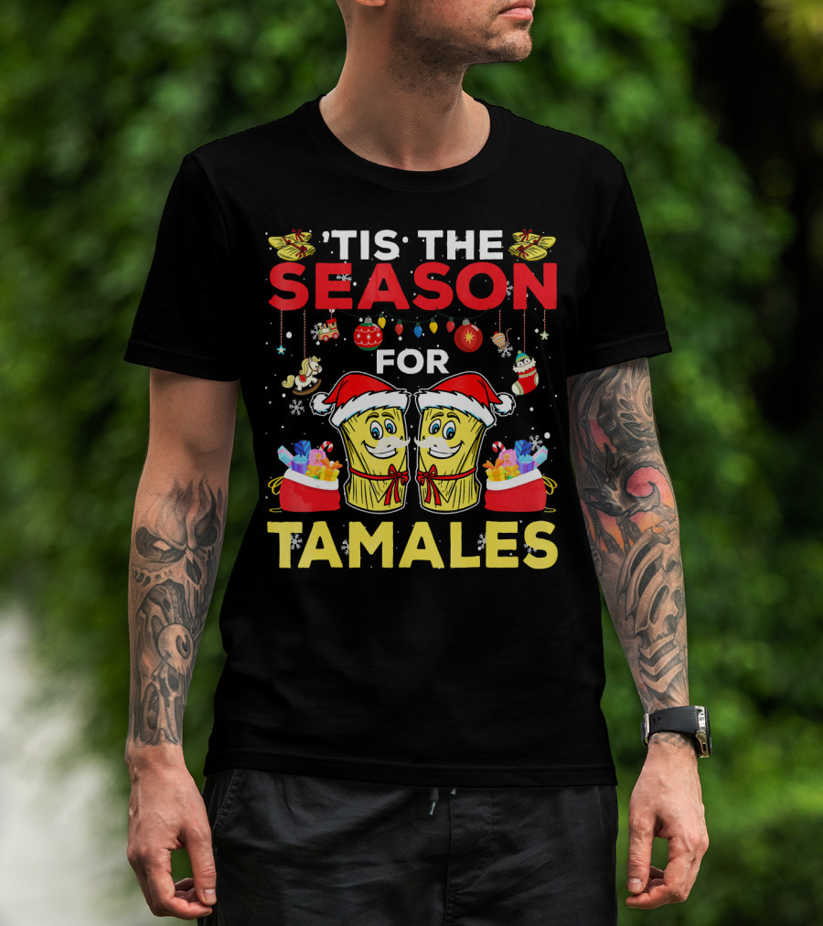'Tis The Season For Tamales Christmas Mex Santa Hat Festive Holiday Cheer T-Shirt