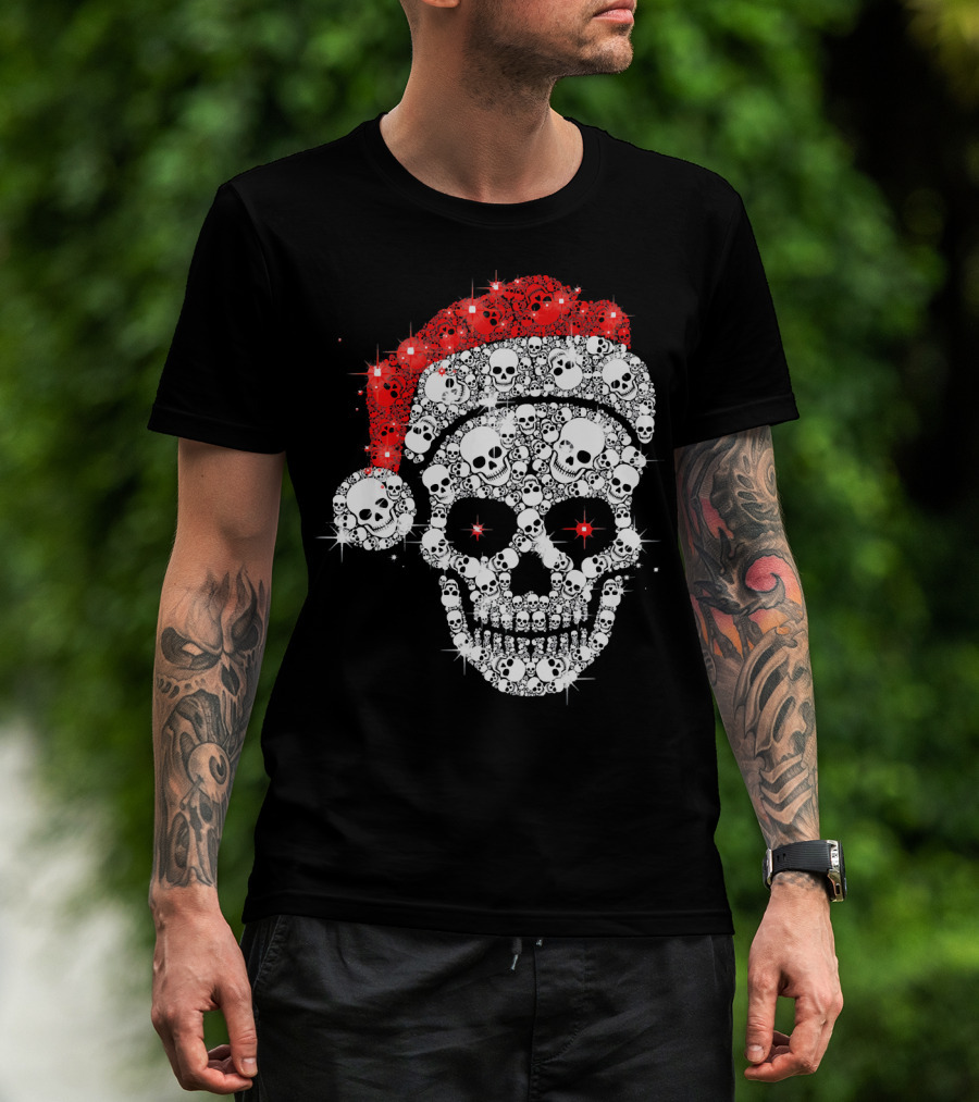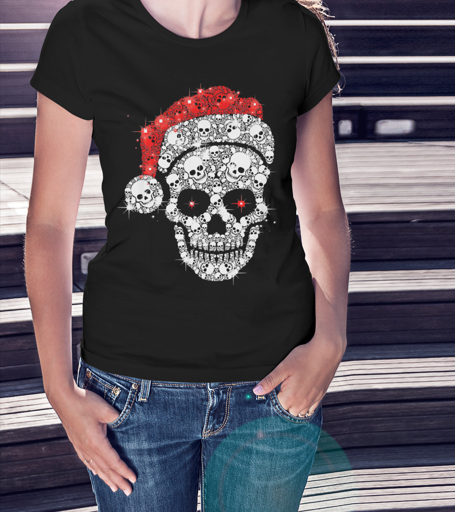 Shiny Skull Rhinestone Santa Hat Christmas Skulls T-Shirt