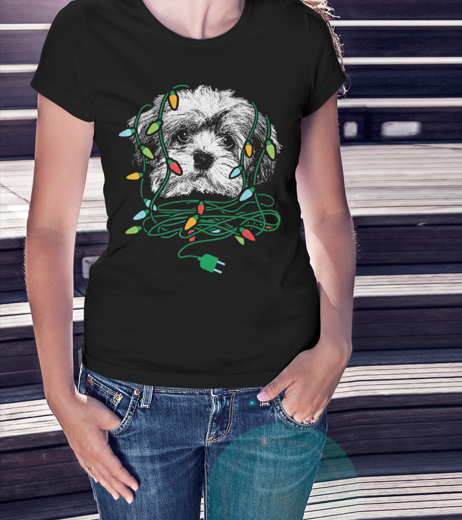 Havanese Puppy Tangled In Colorful Christmas Lights T-Shirt