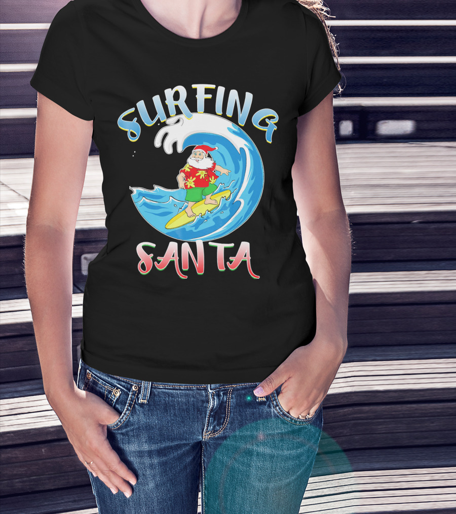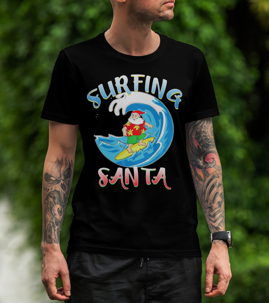 The Surfing Summer Santa Christmas Wave T-shirt is designed for everyday wear and a consistent fit. Fabric is pre-shrunk ring-spun cotton with durable stitching. See the size chart below for exact measurements.
