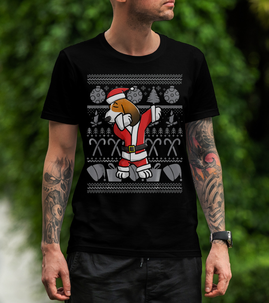 Santa Basset Hound Dabbing Christmas T-Shirt