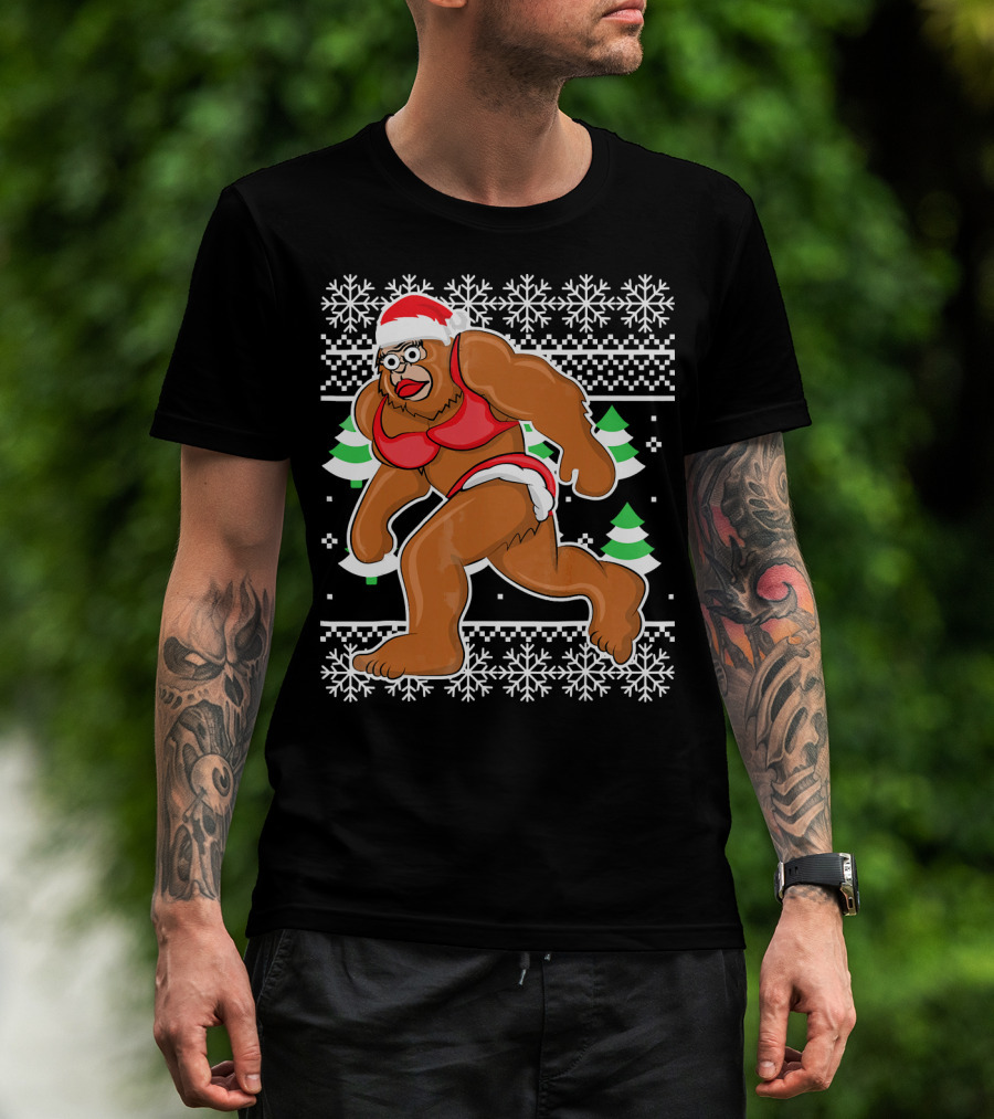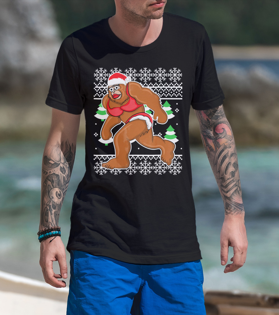 Bigfoot Bikini Ugly Christmas Sweater Santa Hat Snowflakes Holiday Party T-Shirt