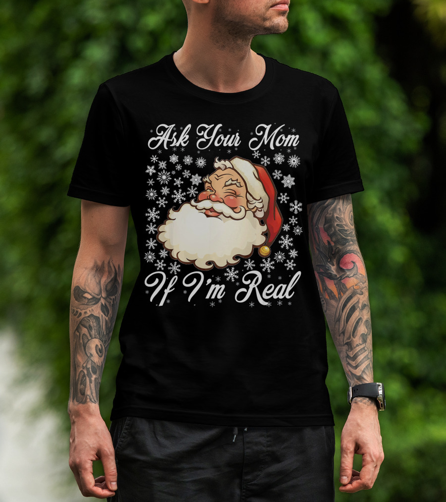 Ask Your Mom If I'm Real Santa Claus Snowflakes T-Shirt