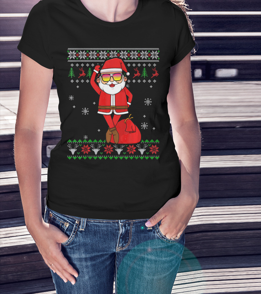 Ballet Lover Santa Claus Ballerina Christmas Snowflakes Reindeer Ugly T-Shirt