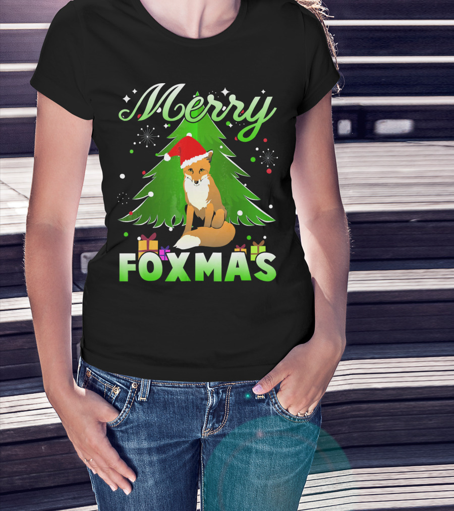 Merry Foxmas Santa Hat Fox And Christmas Tree T-Shirt