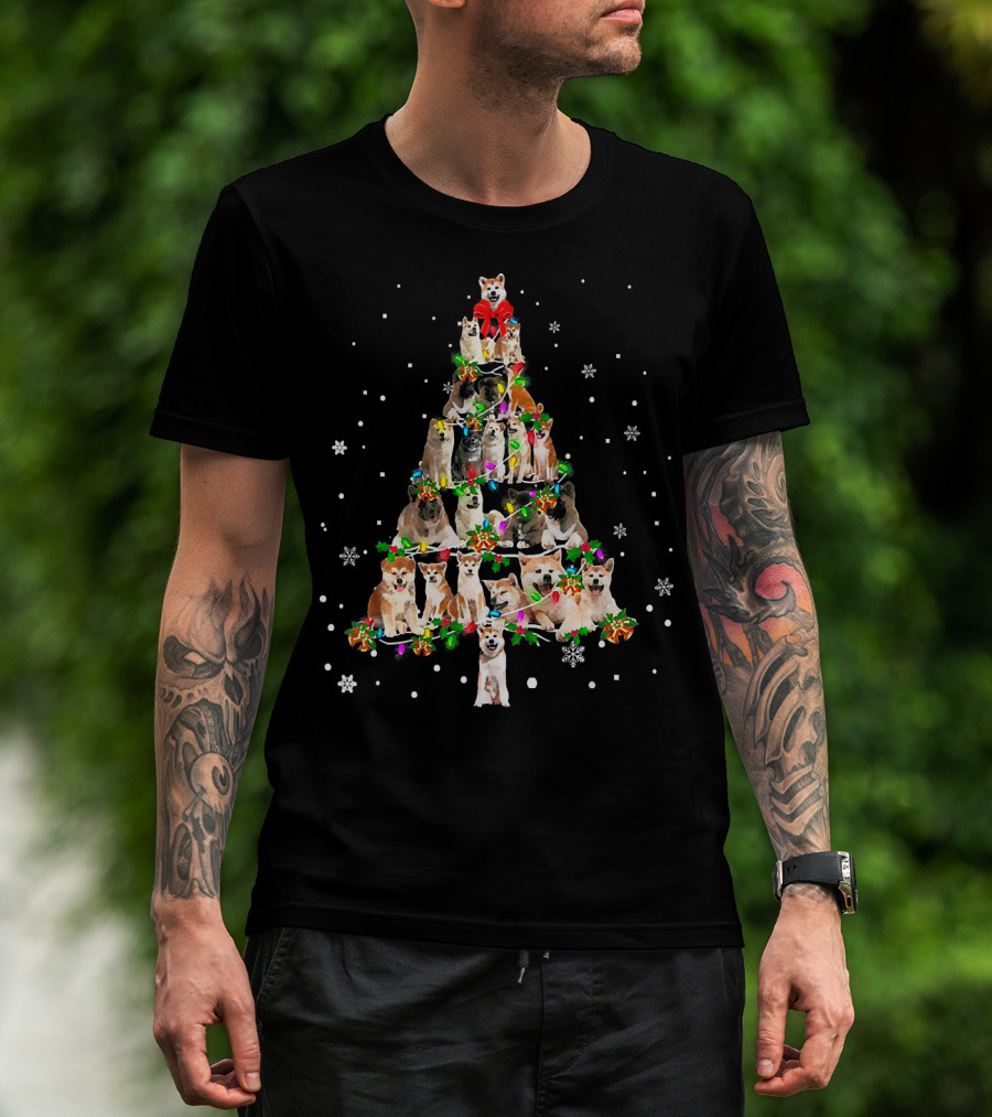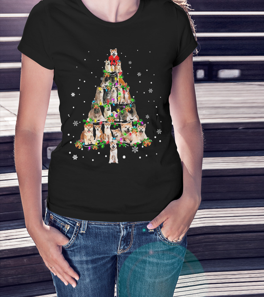 Cute Akita Dog Christmas Tree Decor With Snowflakes And Festive Lights T-Shirt