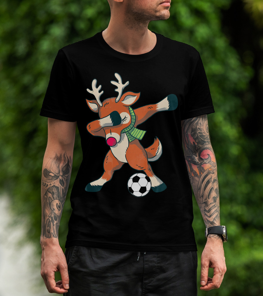 Dabbing Reindeer Soccer Christmas Fun T-Shirt