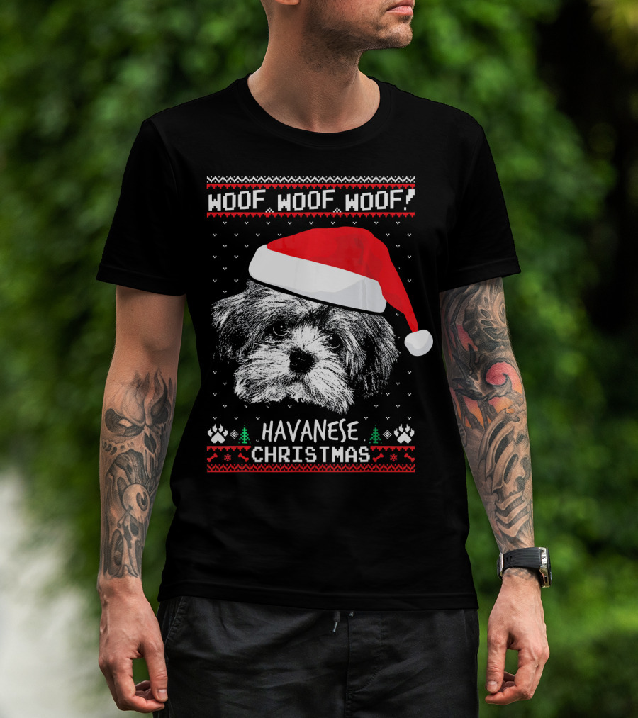 The Woof Woof Woof Havanese Christmas T-shirt is designed for everyday wear and a consistent fit. Fabric is pre-shrunk ring-spun cotton with durable stitching. See the size chart below for exact measurements.