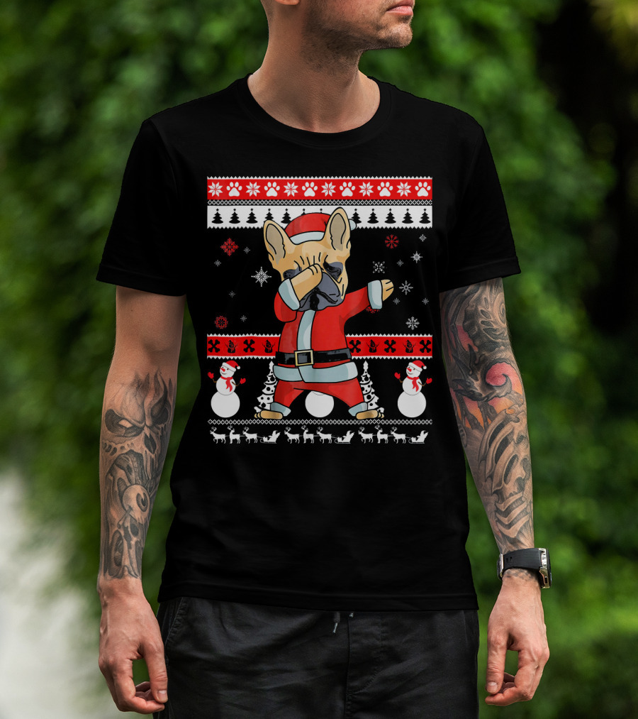 French Bulldog Christmas Frenchie Santa Dabbing Ugly T-Shirt
