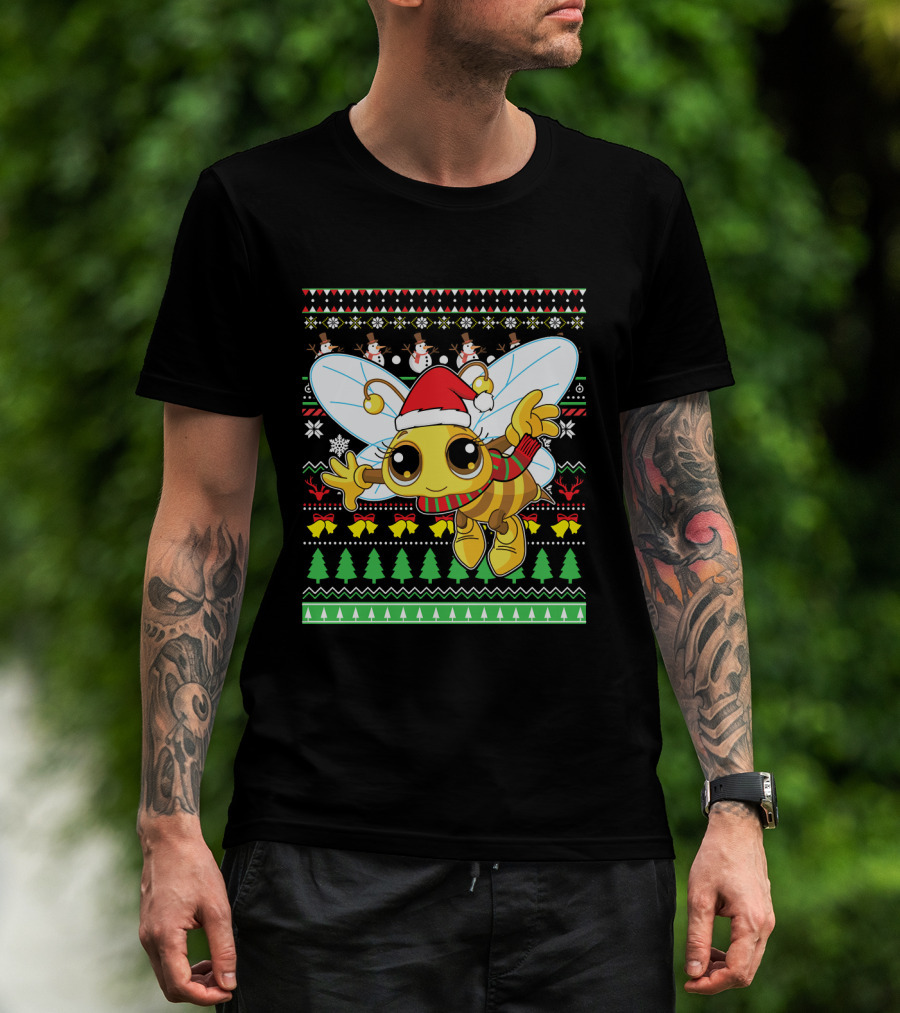 UglyBee Santa Claus Lovely Christmas Sweater Pattern With Cartoon Bee T-Shirt