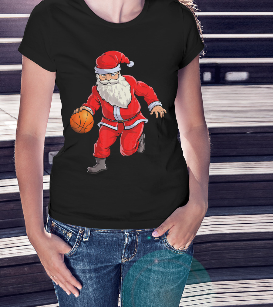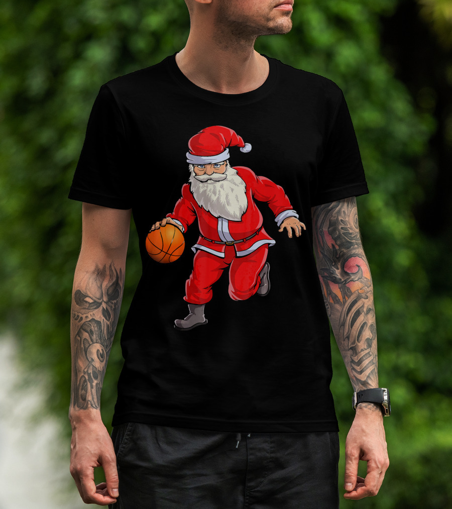 Santa Claus Basketball Dribble Christmas T-Shirt