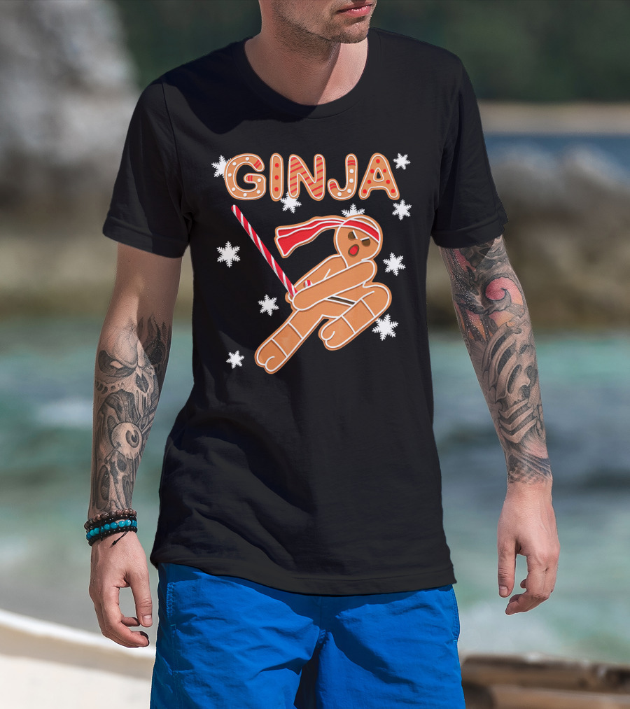 Gingerbread Ginja Funny Christmas Ninja Candy Cane Snowflakes T-Shirt