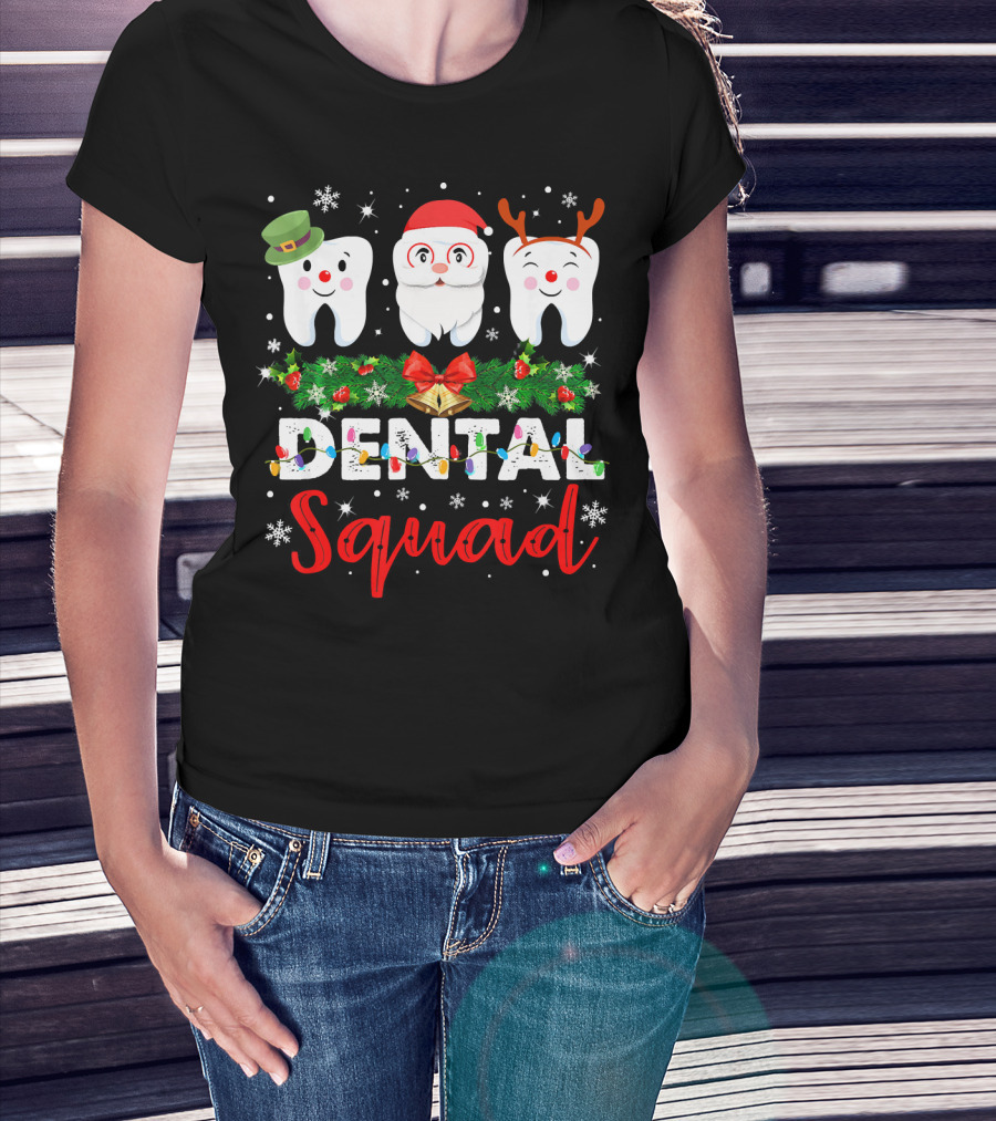 Dental Squad Hygienist Dentist Love Christmas Snowflakes Fun T-Shirt