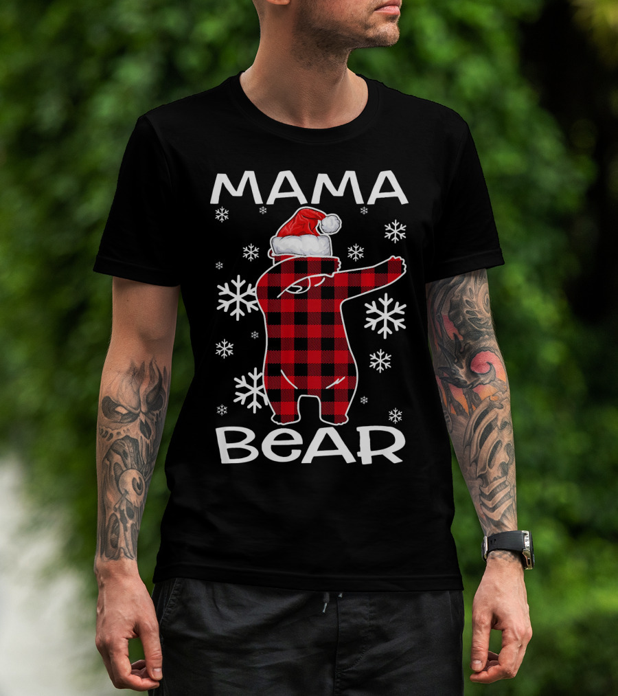Mama Bear Dabbing Santa Hat Snowflakes T-Shirt