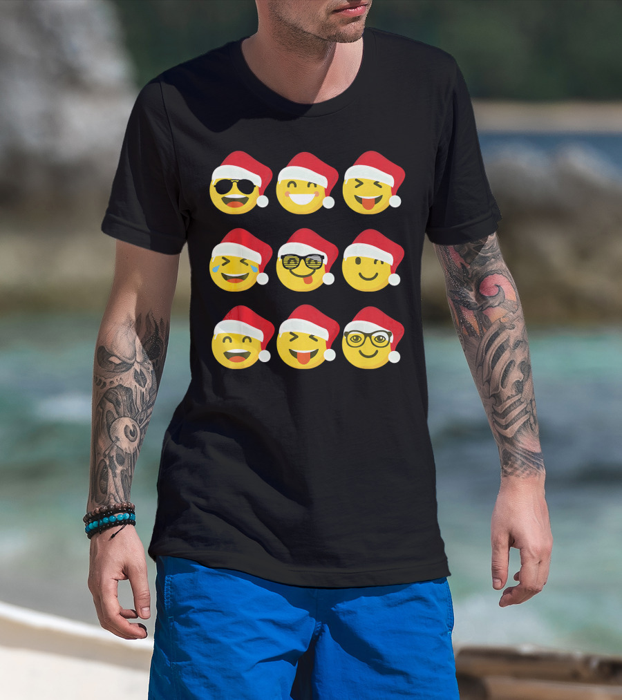 The Christmas Funny Santa Emojis Faces T-shirt is designed for everyday wear and a consistent fit. Fabric is pre-shrunk ring-spun cotton with durable stitching. See the size chart below for exact measurements.