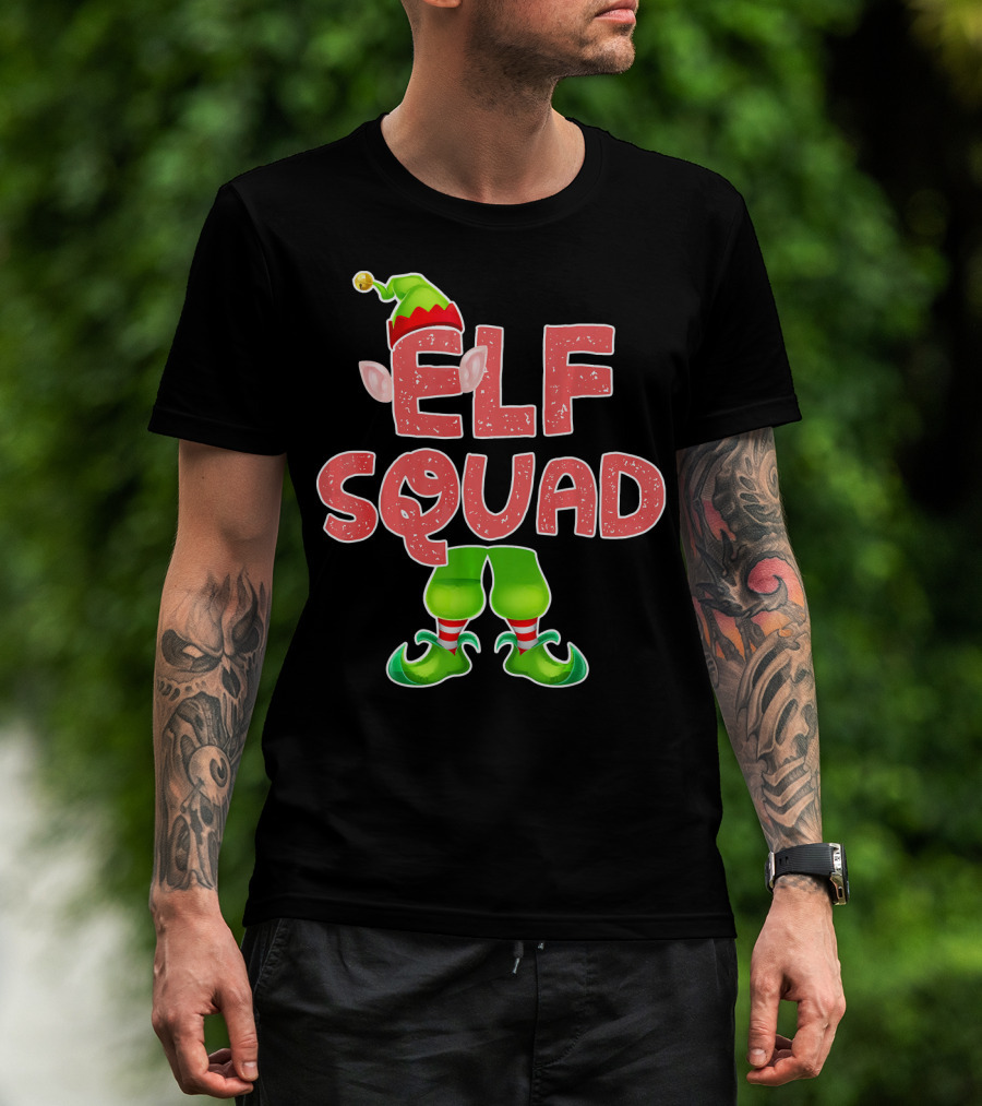Elf Squad Funny Merry Christmas Hat And Shoes T-Shirt