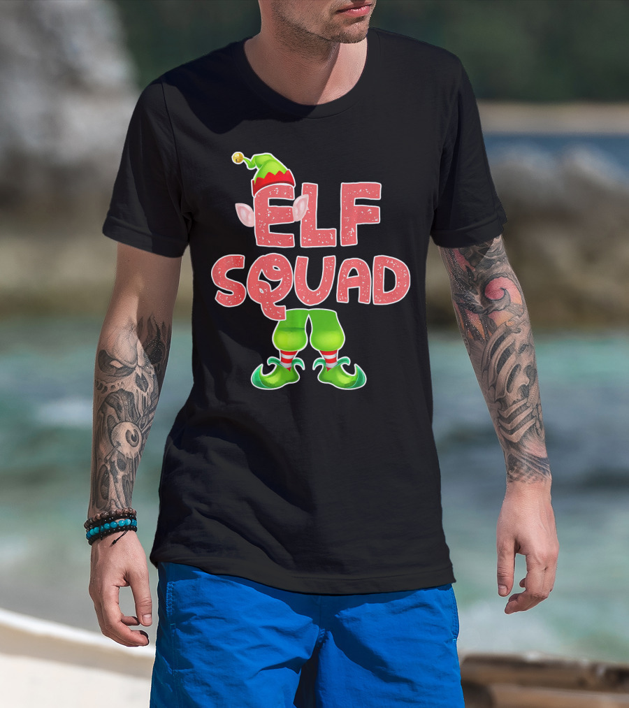The Elf Squad Funny Merry Christmas Hat and Shoes T-shirt is designed for everyday wear and a consistent fit. Fabric is pre-shrunk ring-spun cotton with durable stitching. See the size chart below for exact measurements.