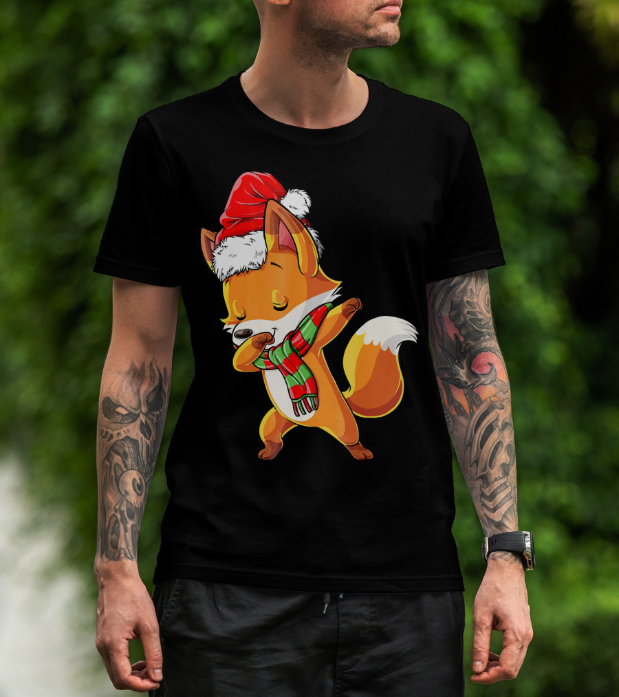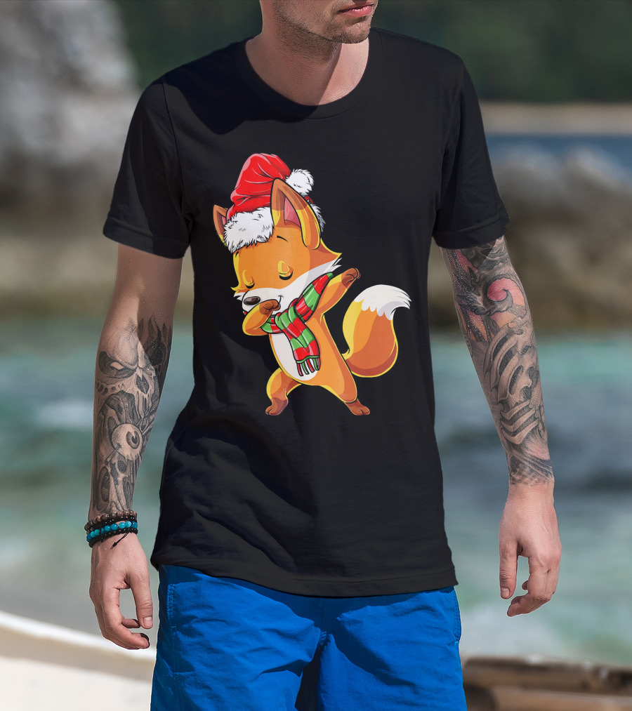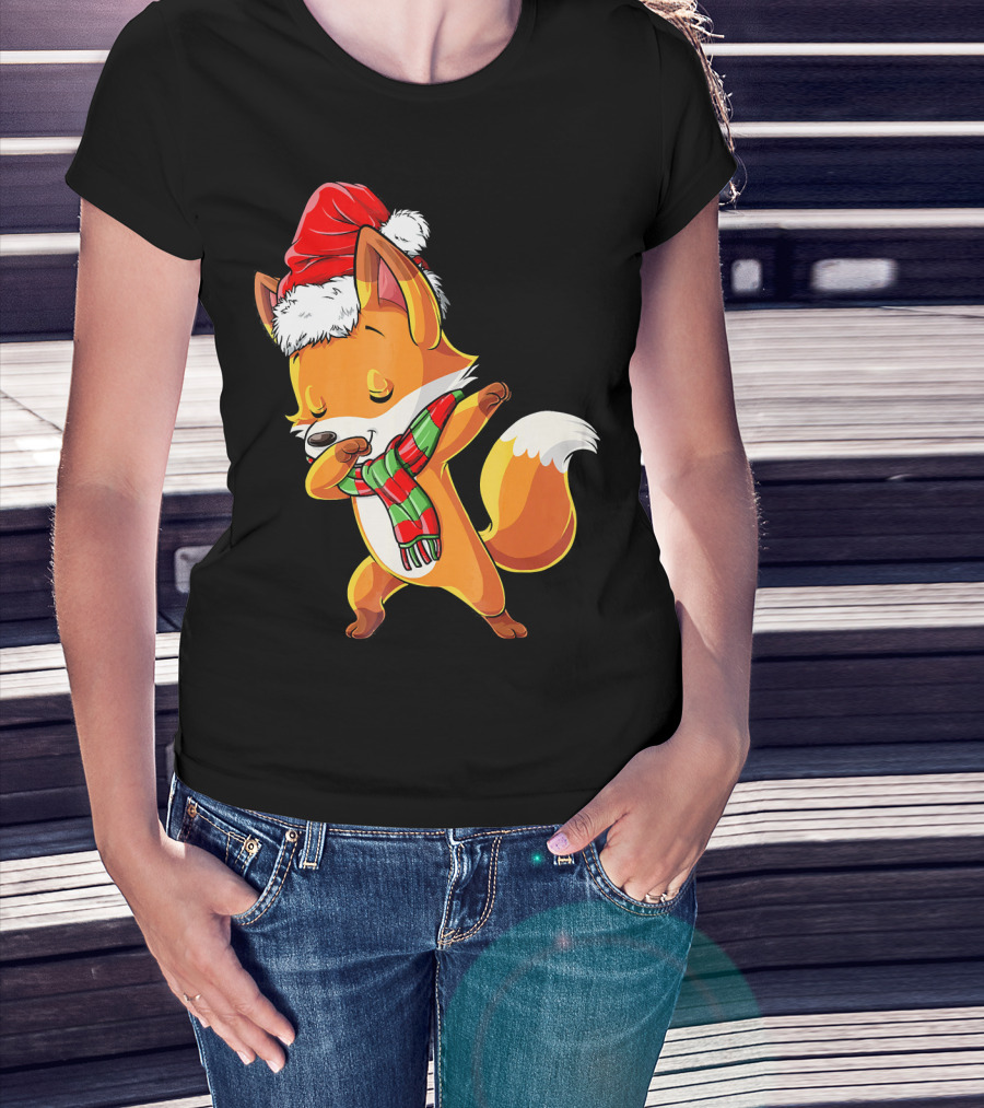 Christmas Dab Fox With Santa Hat And Scarf T-Shirt