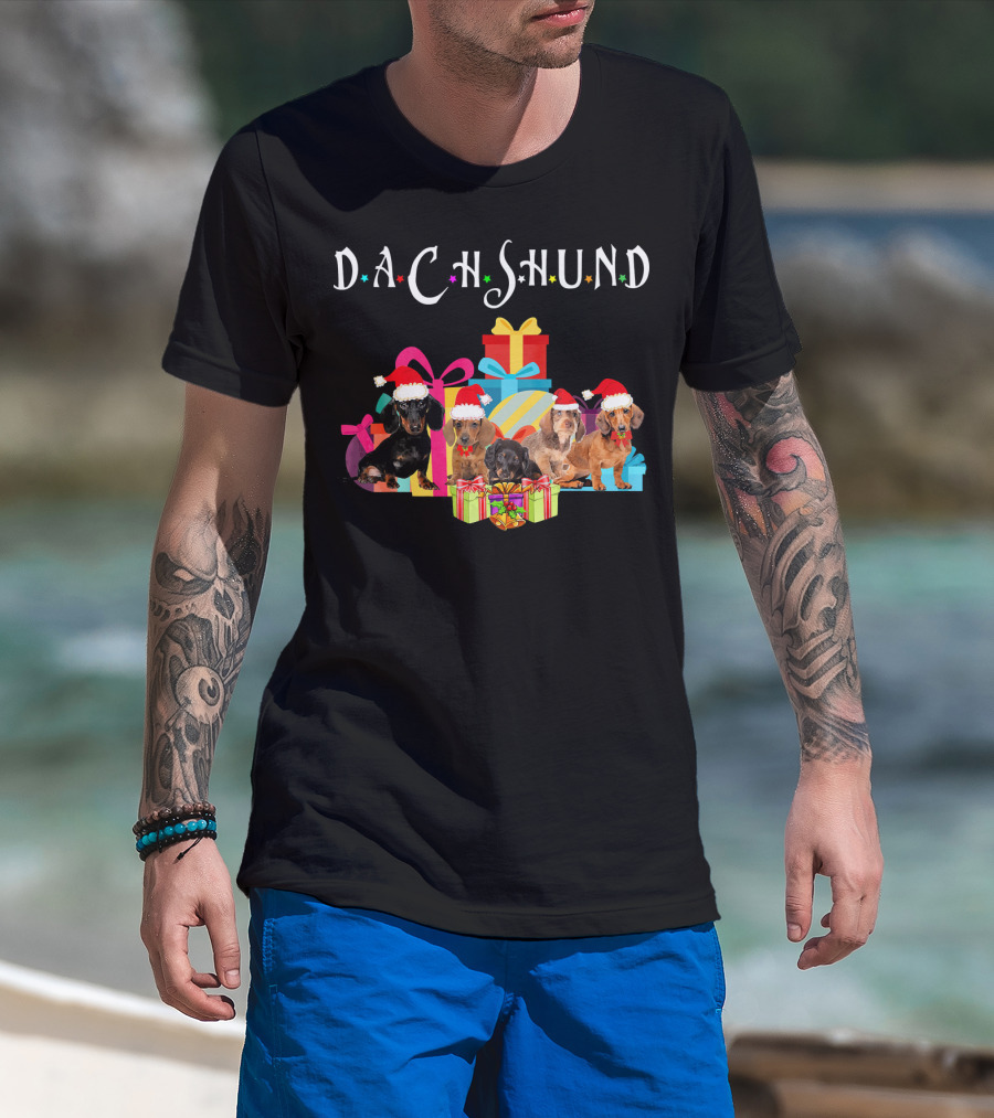 Dachshund Puppies Christmas Santa Hat Gifts T-Shirt
