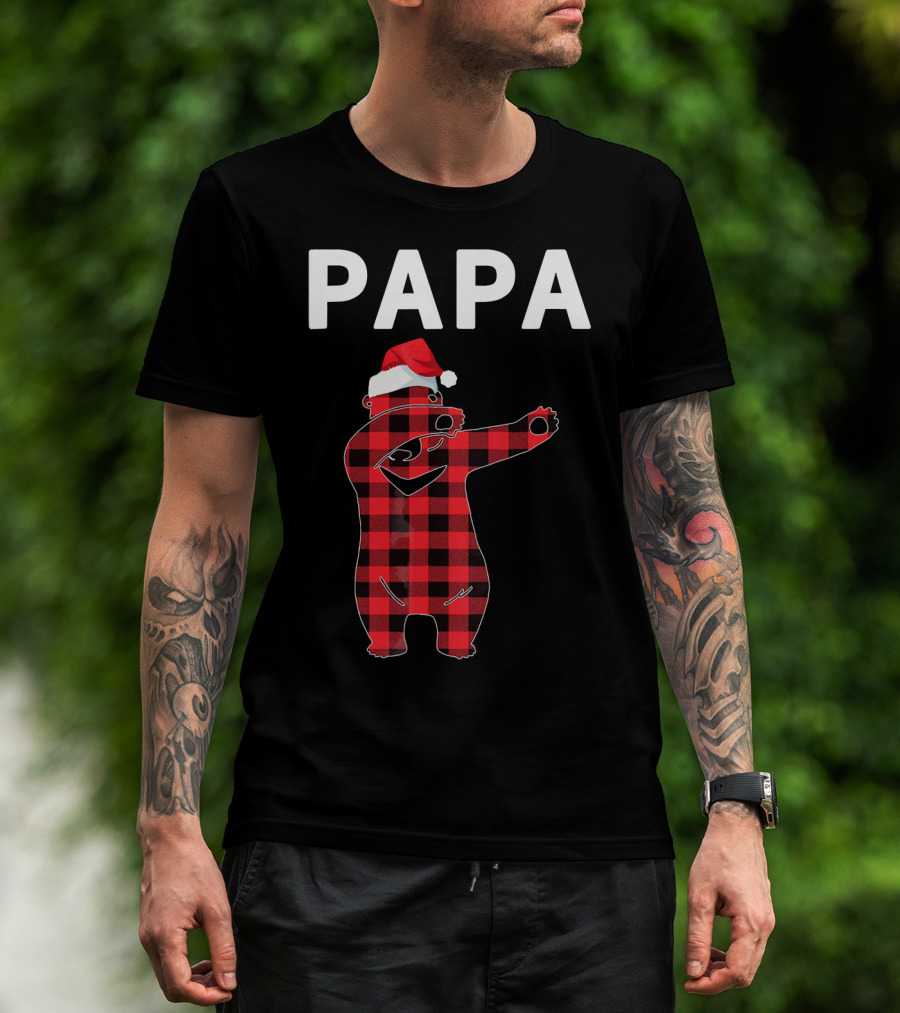 PAPA Bear Plaid Santa Hat Christmas Dabbing T-Shirt