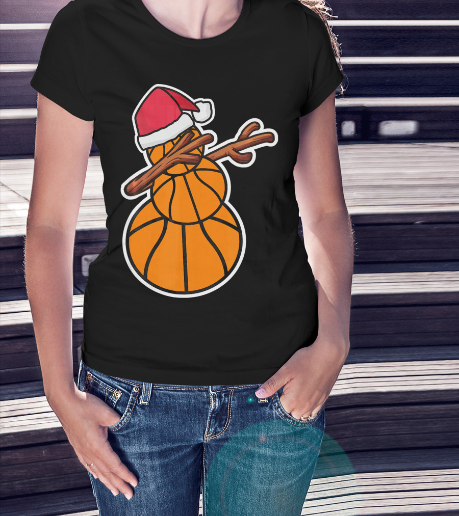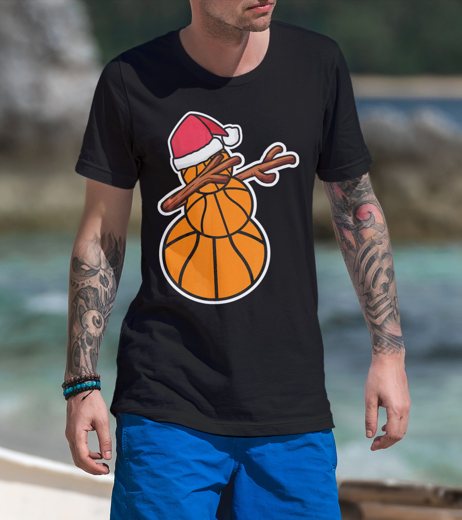 Basketball Snowman Dabbing Santa Hat T-Shirt